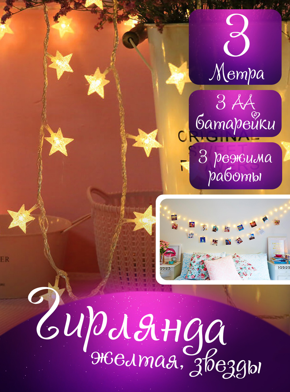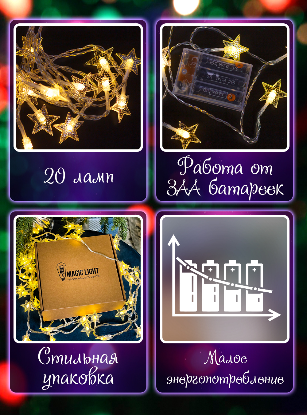 Электрогирлянда интерьерная Нить Magic Light Светодиодная 20 ламп, 3 м, питание 3 AA