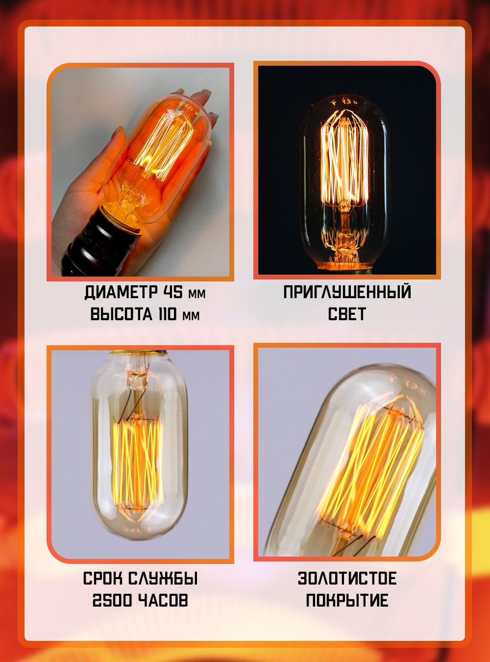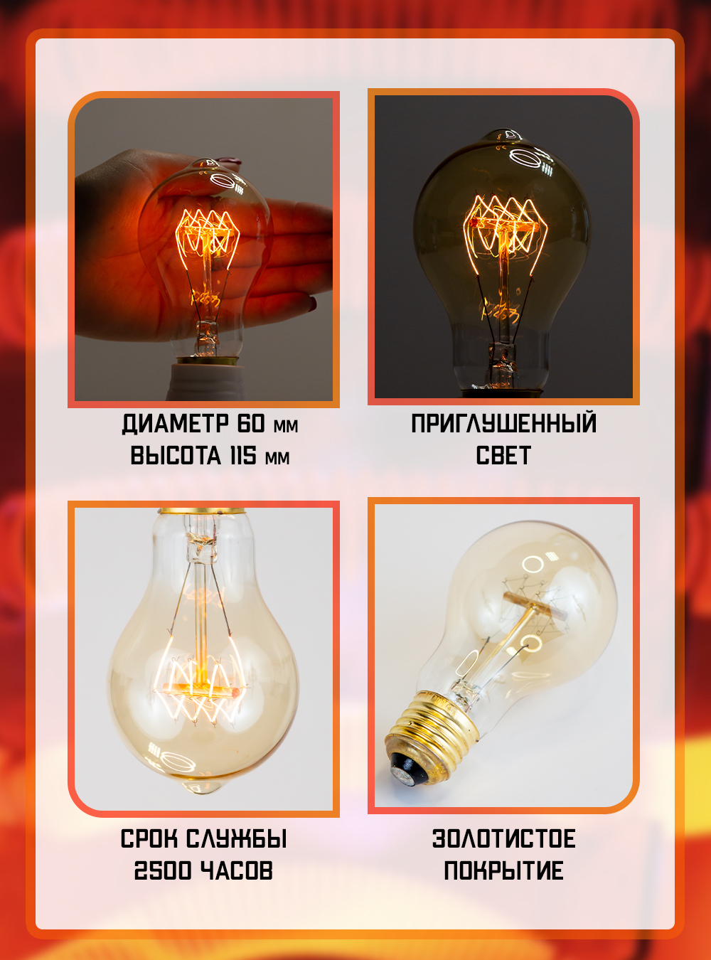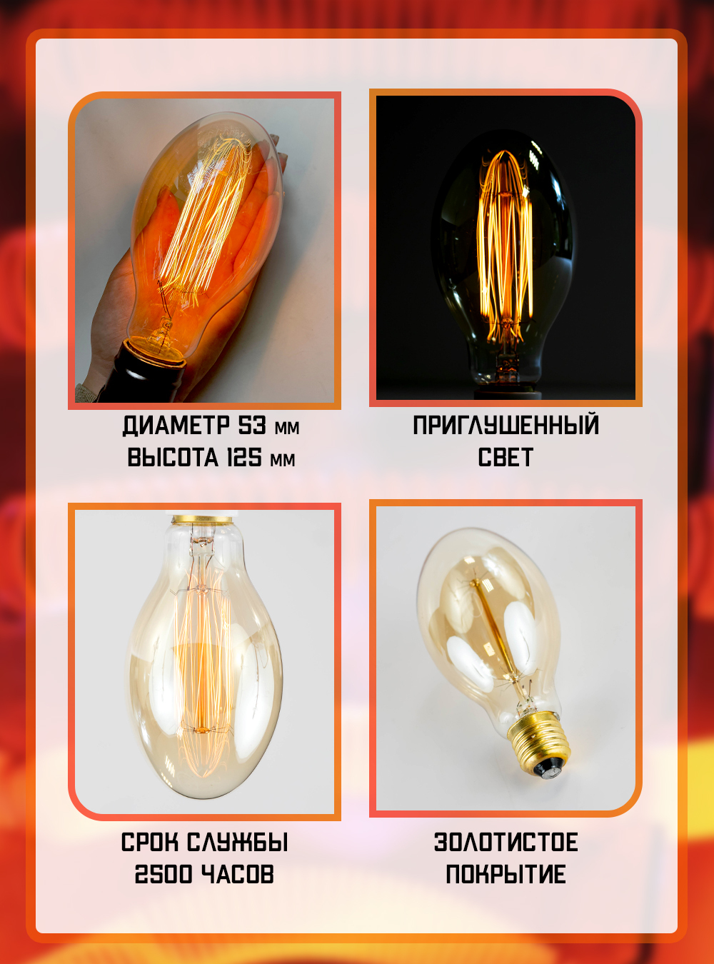 Лампочка Magic Light Эдисона ГРИБ А, Теплый белый свет, 40 Вт, Накаливания, 1 шт.