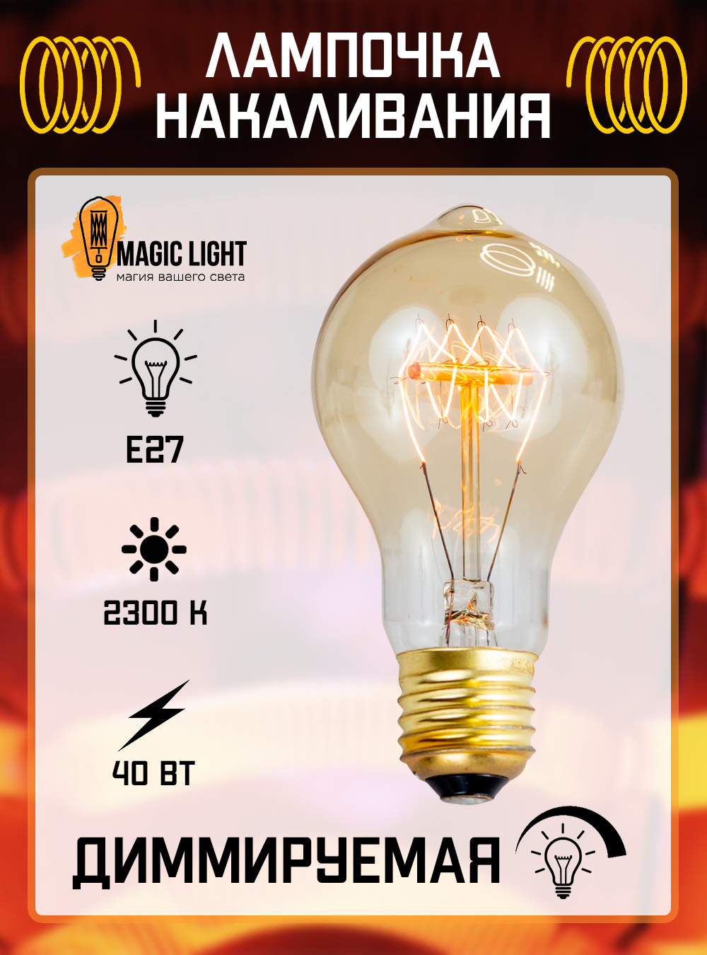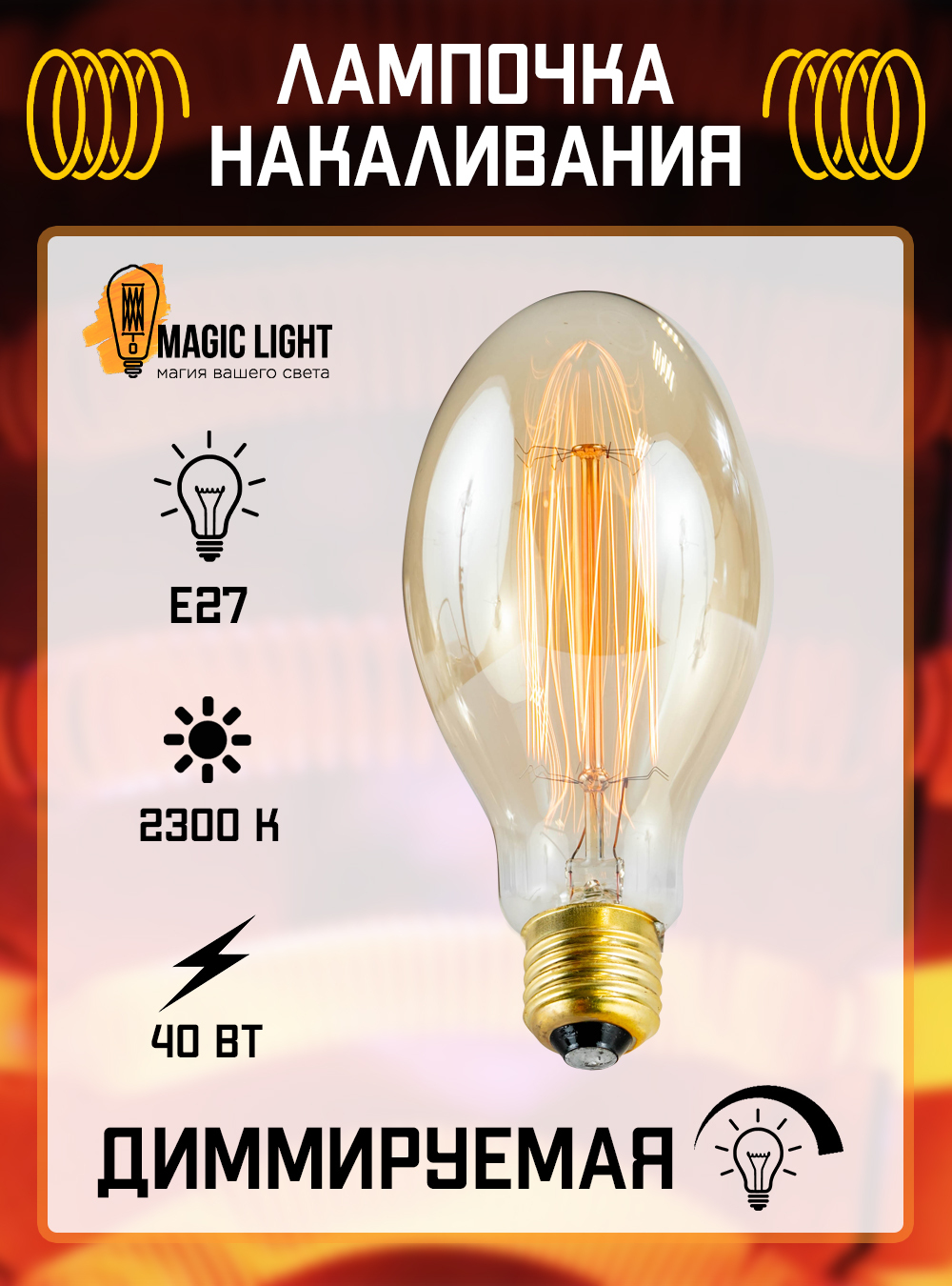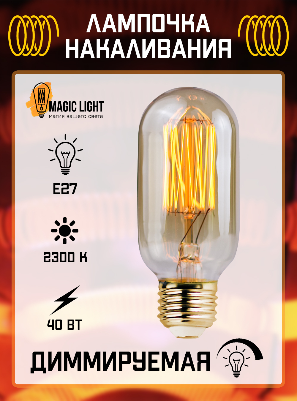 Лампочка Magic Light 461000404011, Теплый белый свет, E27, 40 Вт, Накаливания, 1 шт.