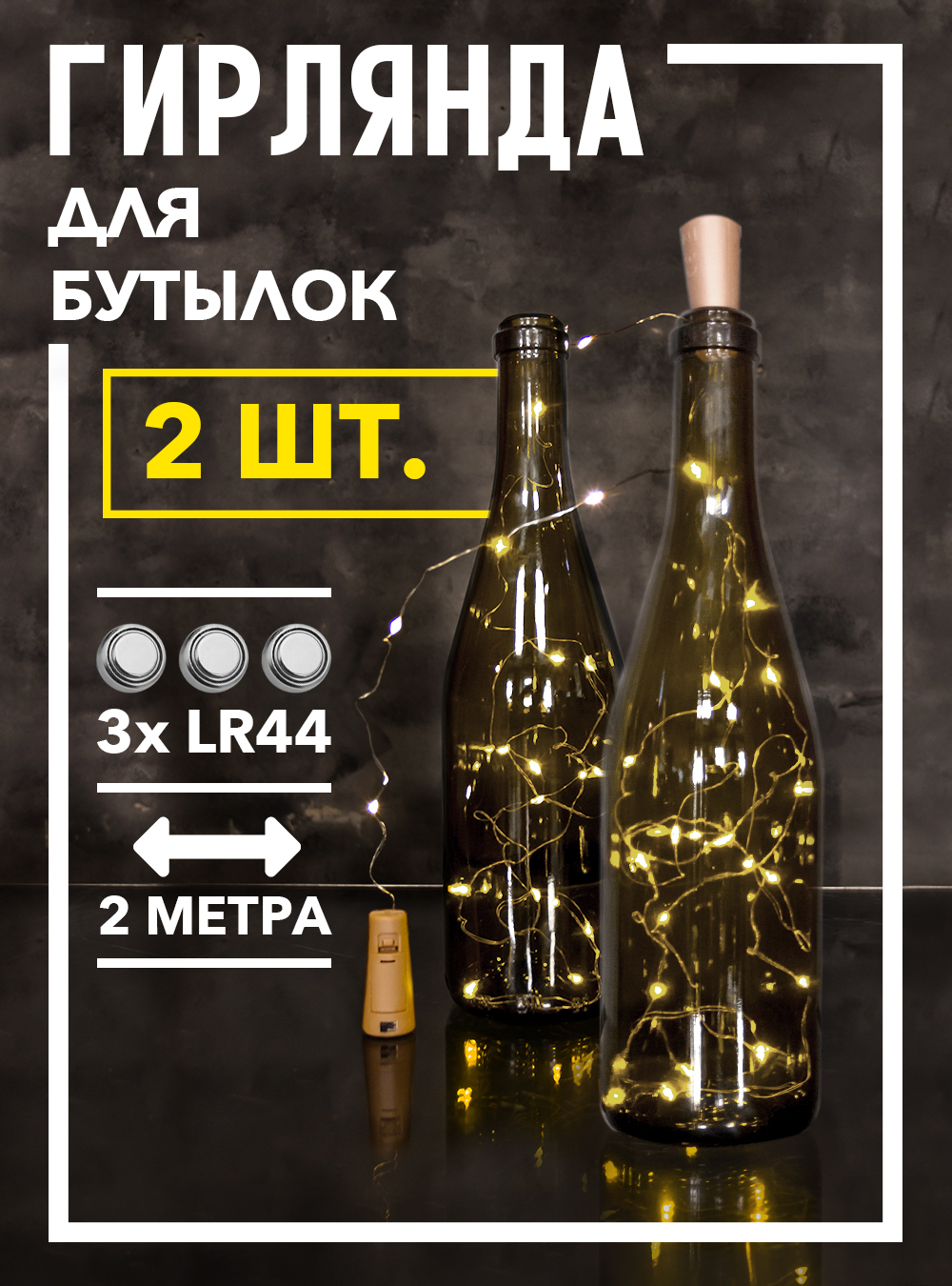 Электрогирлянда Нить Magic Light, 2 м, питание 3 AG13 (LR44), 2 шт