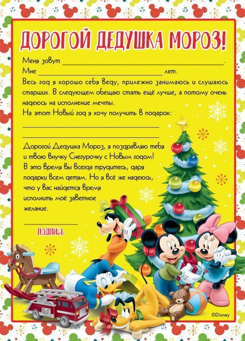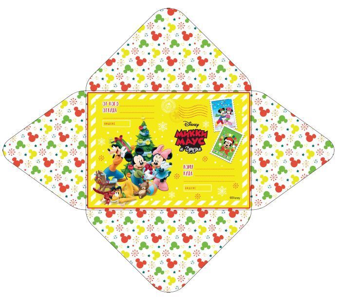 Письмо Деду Морозу в конверте Микки Маус "Новогоднее настроение"