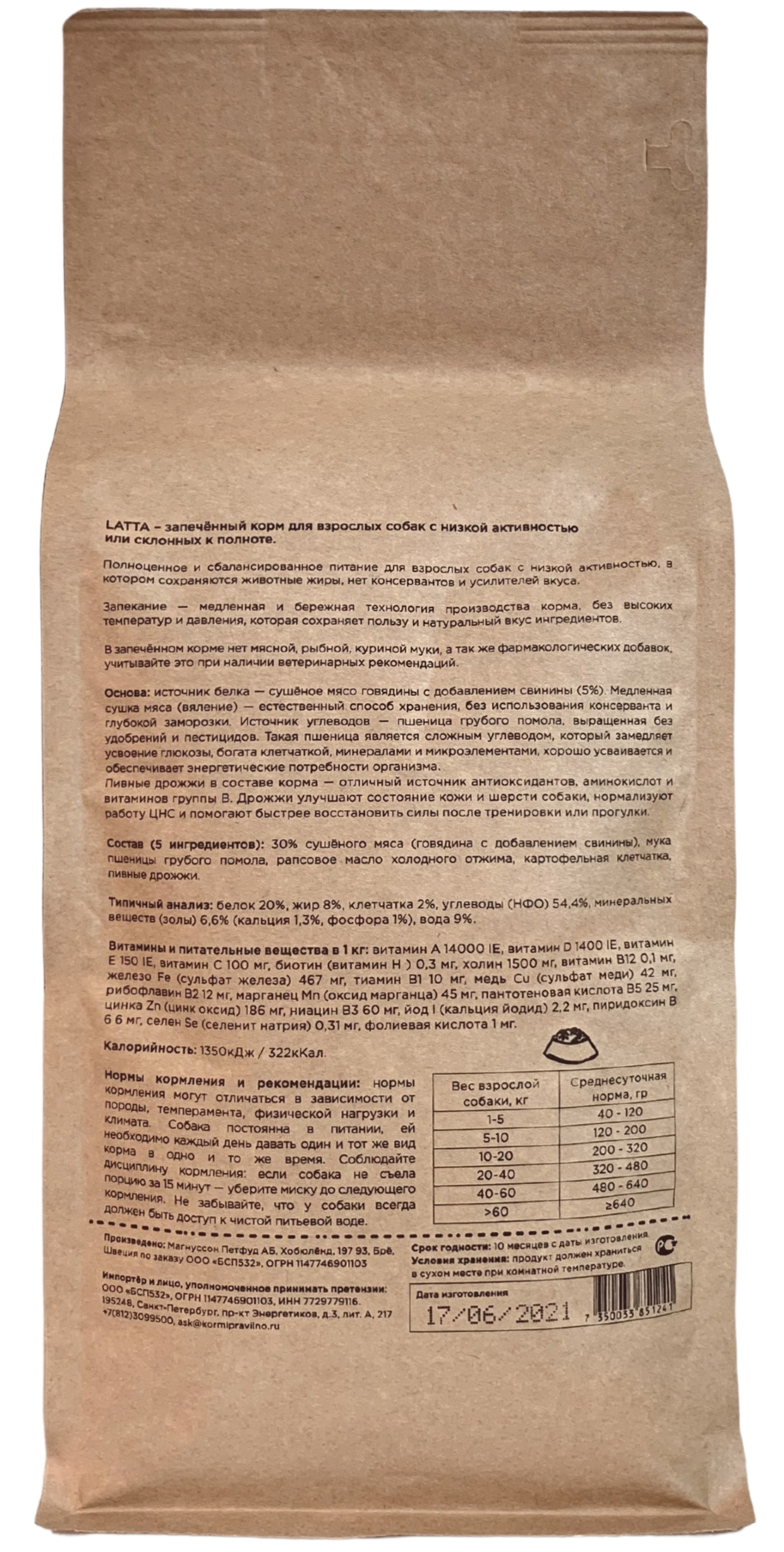 Magnusson Original Latta запеченный сухой корм для собак, склонных к избыточному весу, 4 шт по 1 кг