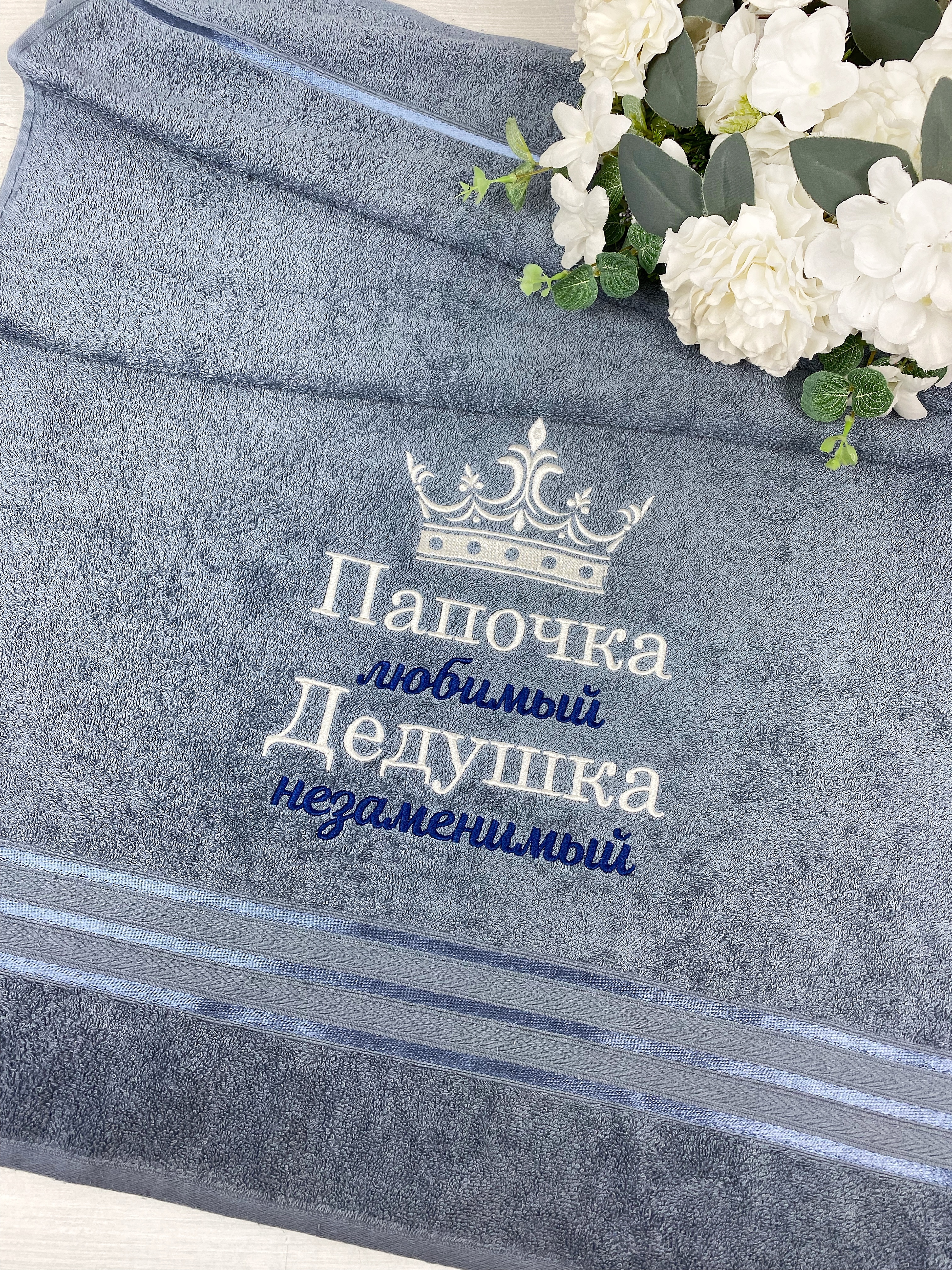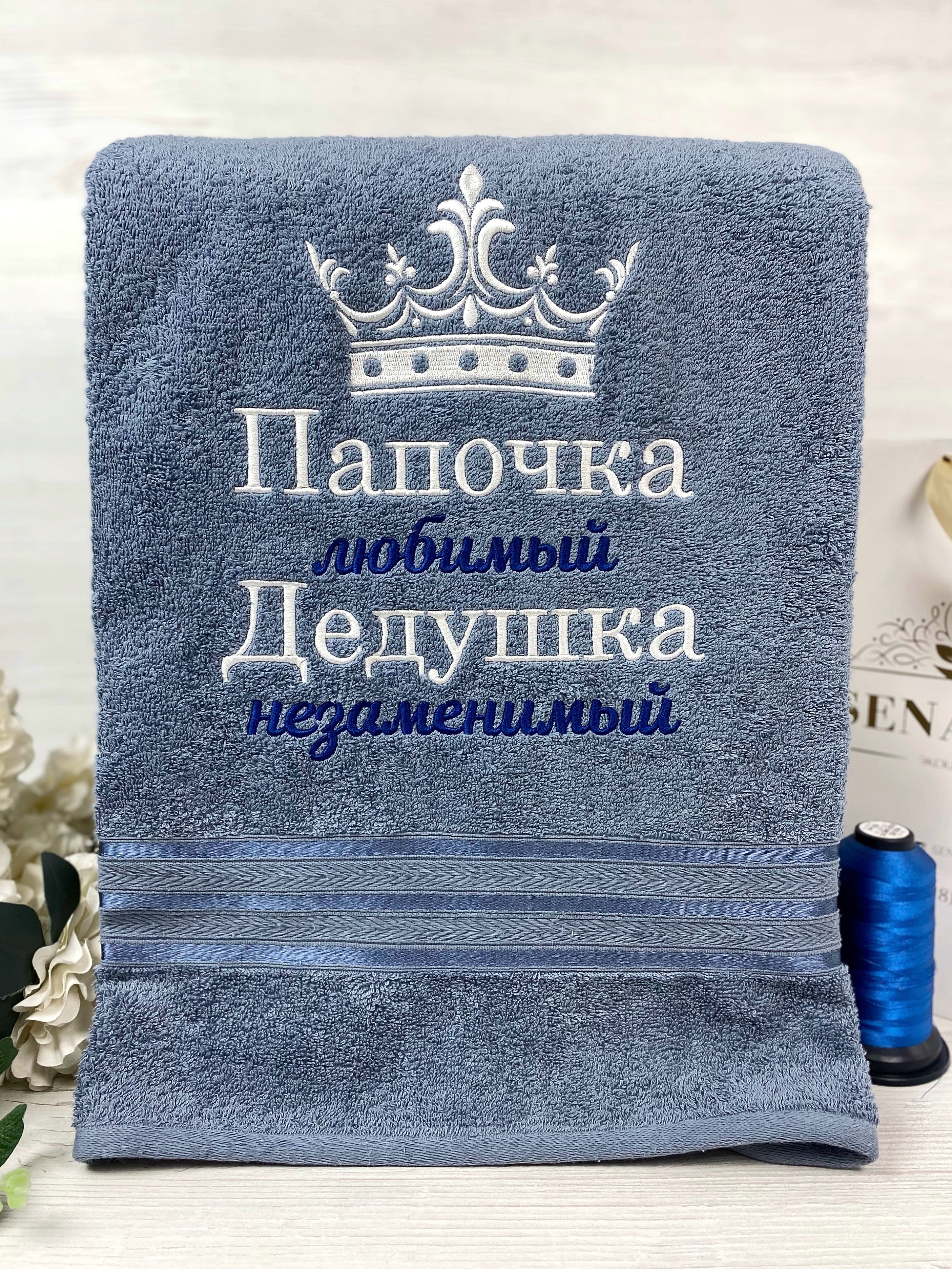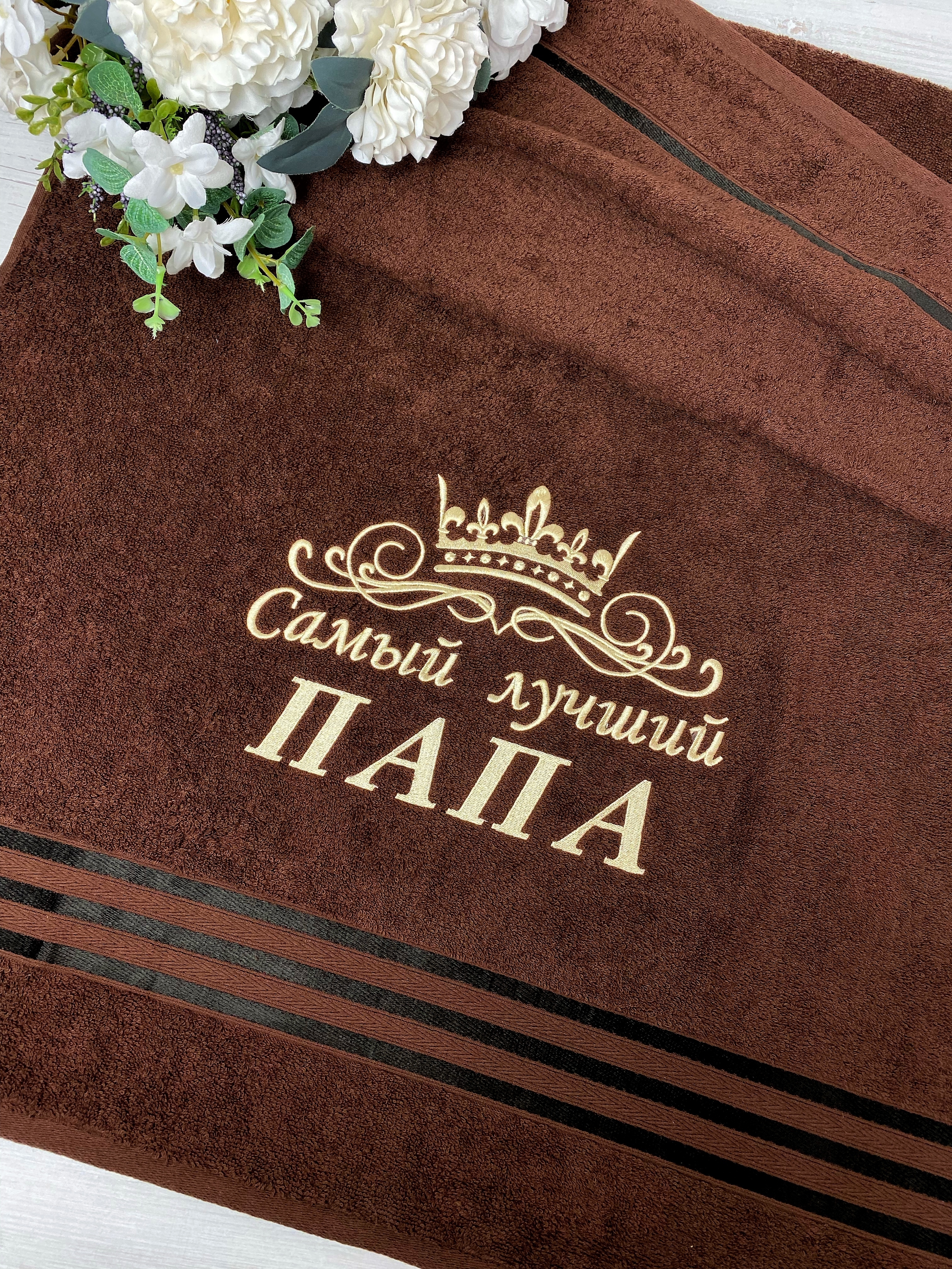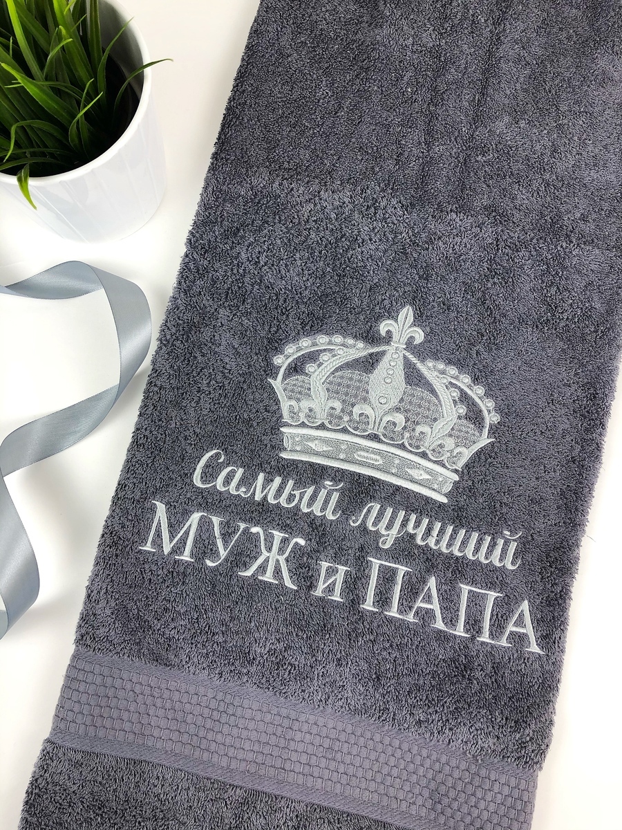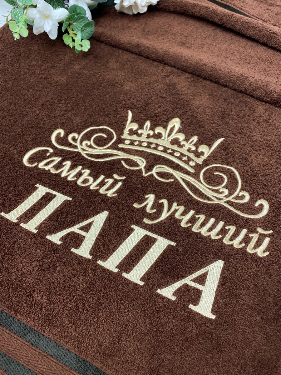 Полотенце банное Mahroff Именное / с короной / c с вышивкой самый лучший папа Хлопок 70x137 см