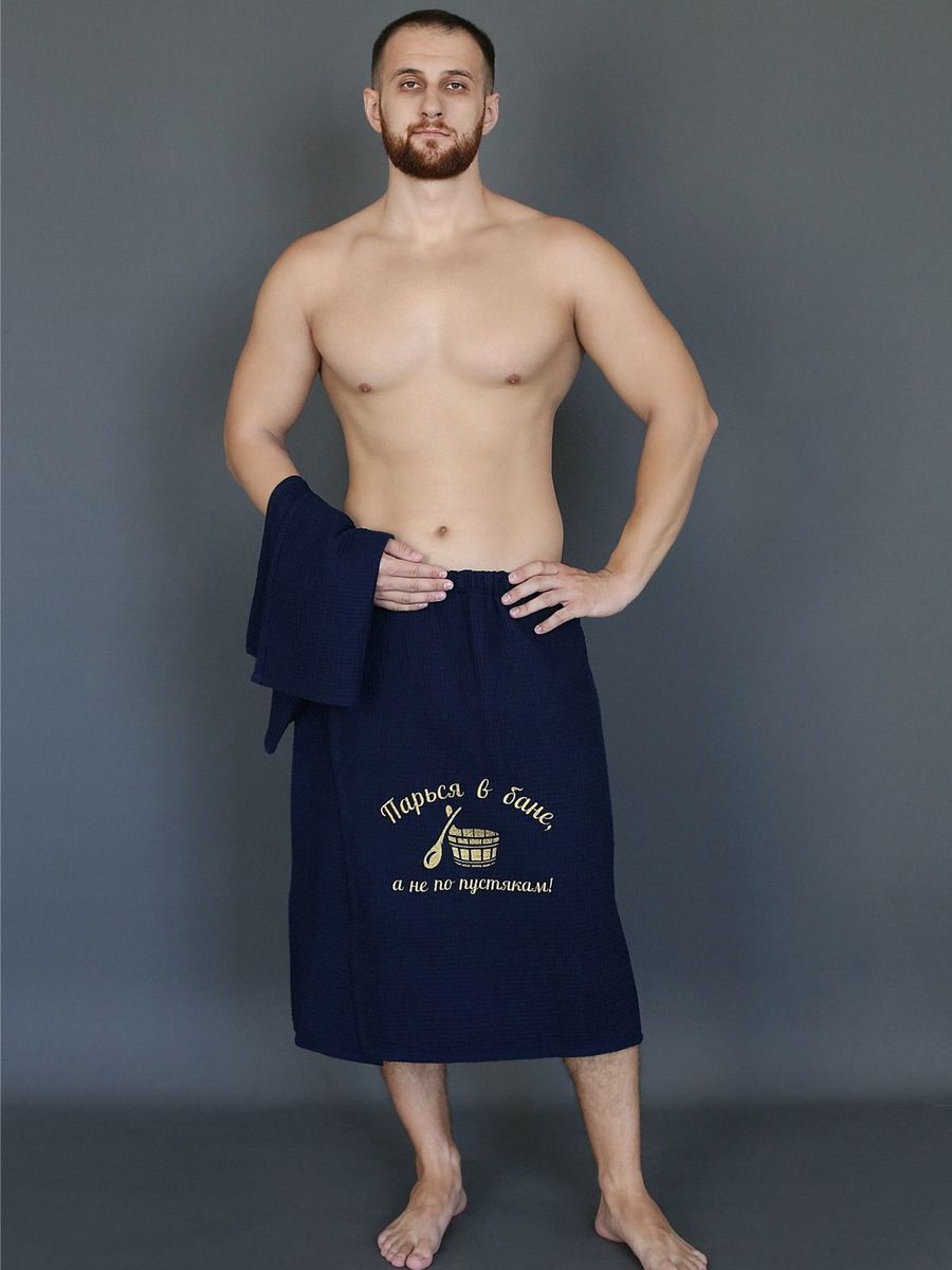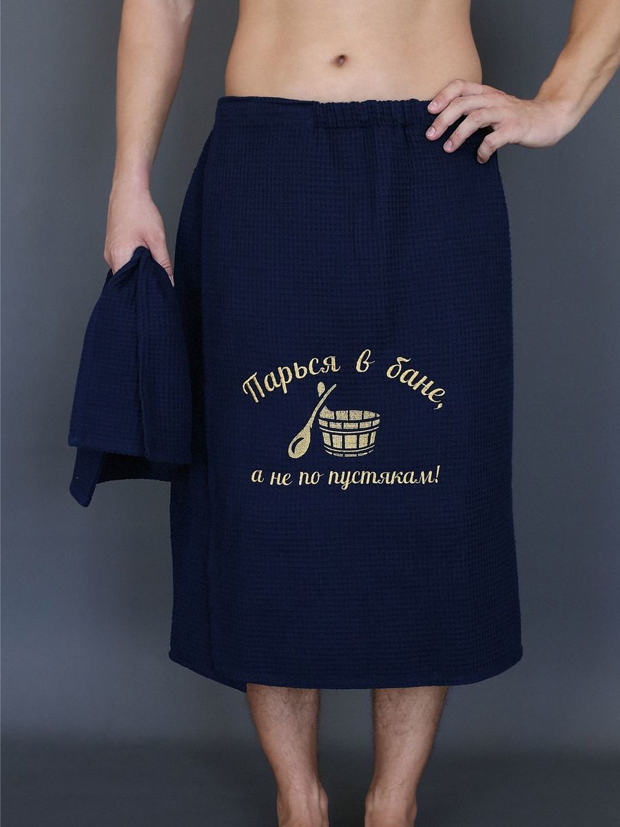 Банный набор вафельный с вышивкой " Парься в бане, а не по пустякам ". На подарок