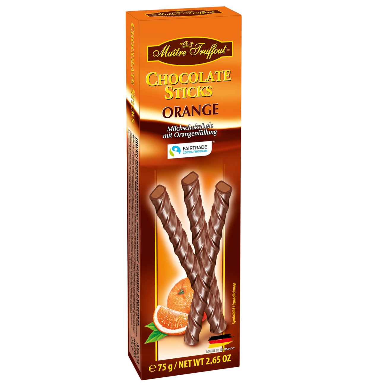 Молочный шоколад с апельсиновой начинкой в палочках, 75 г