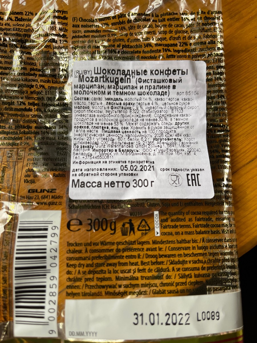 Шоколадные конфеты "Mozartkugeln", 300 г