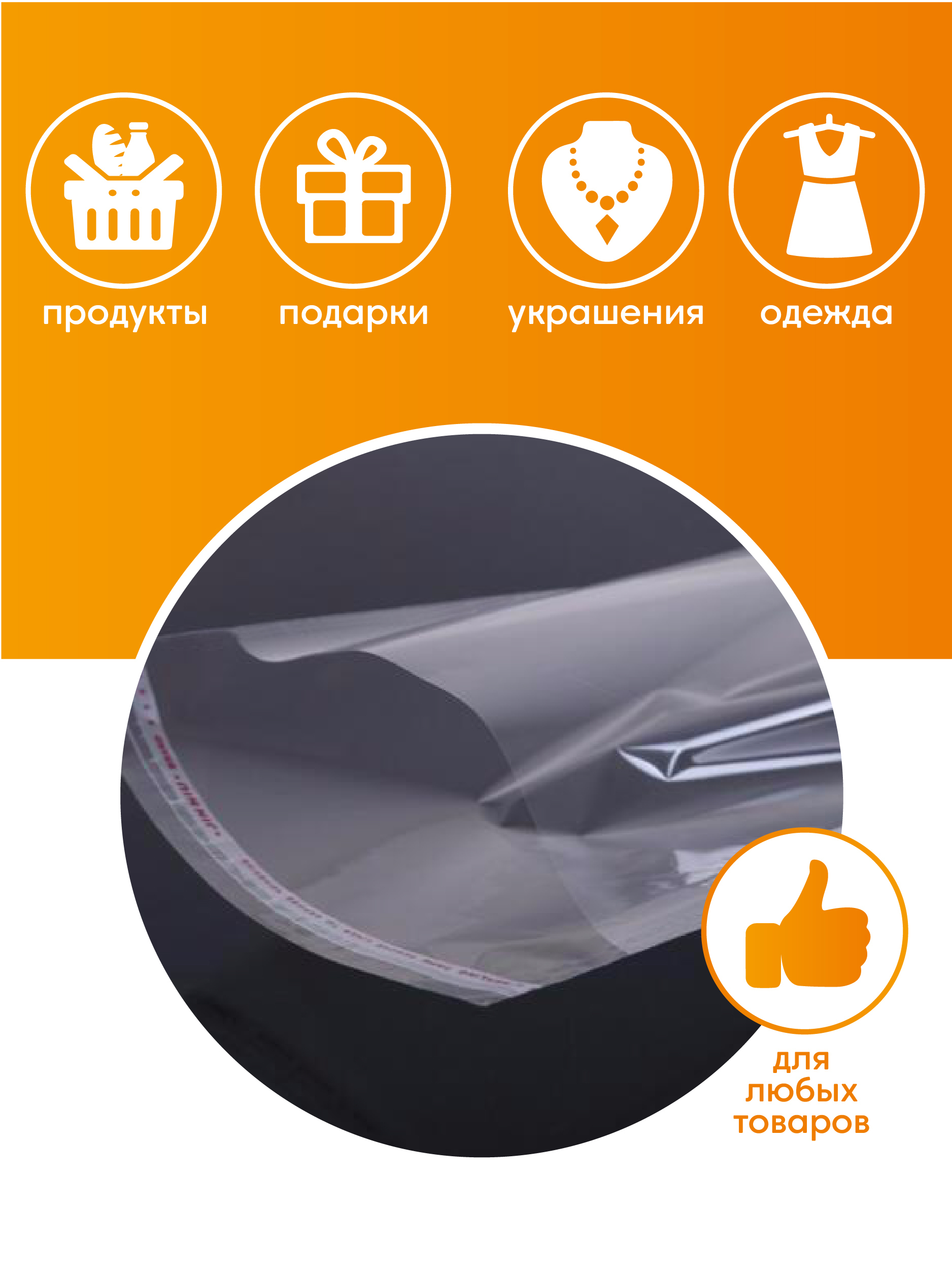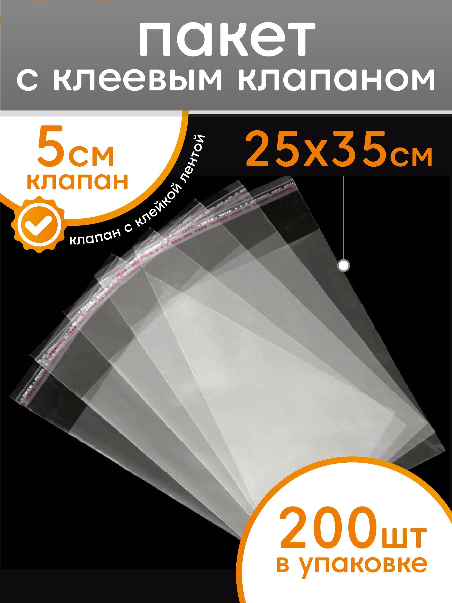 Пакеты с клеевым клапаном прозрачные упаковочные 25х35см+5см 200шт в упаковке