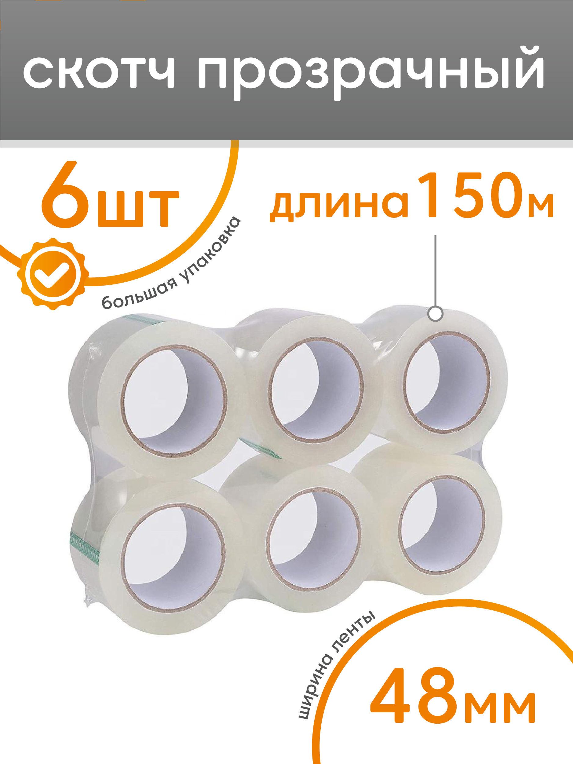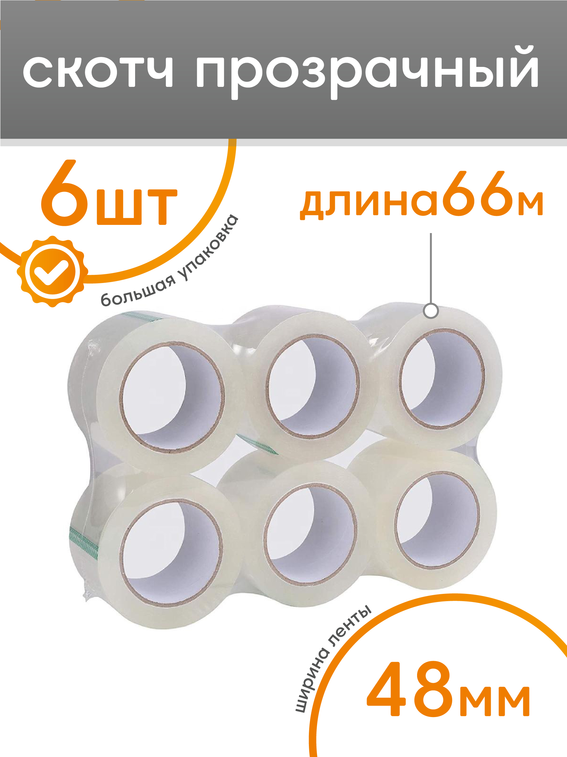 Скотч клейкая лента прозрачная 48ммх66м упаковка 6 рулонов