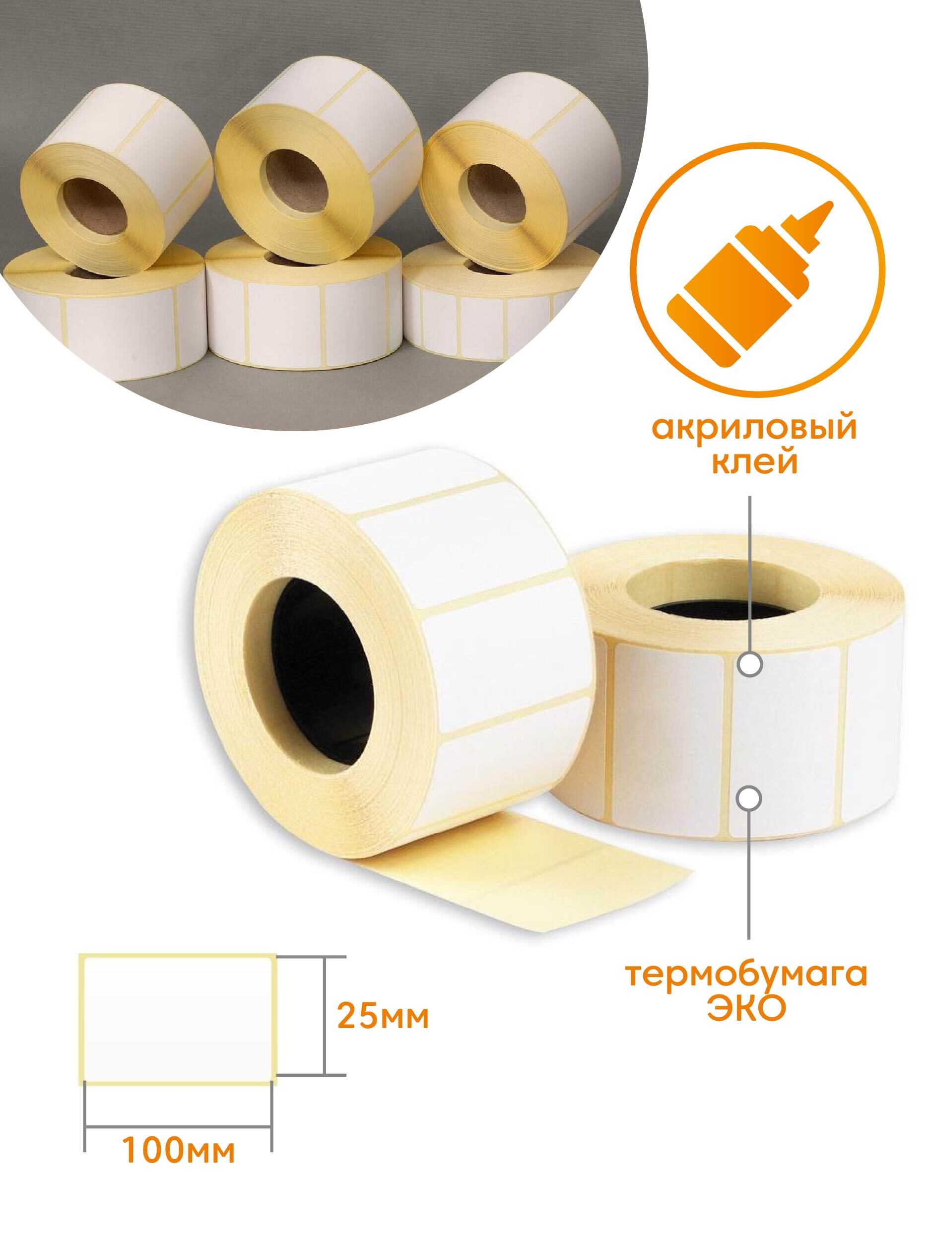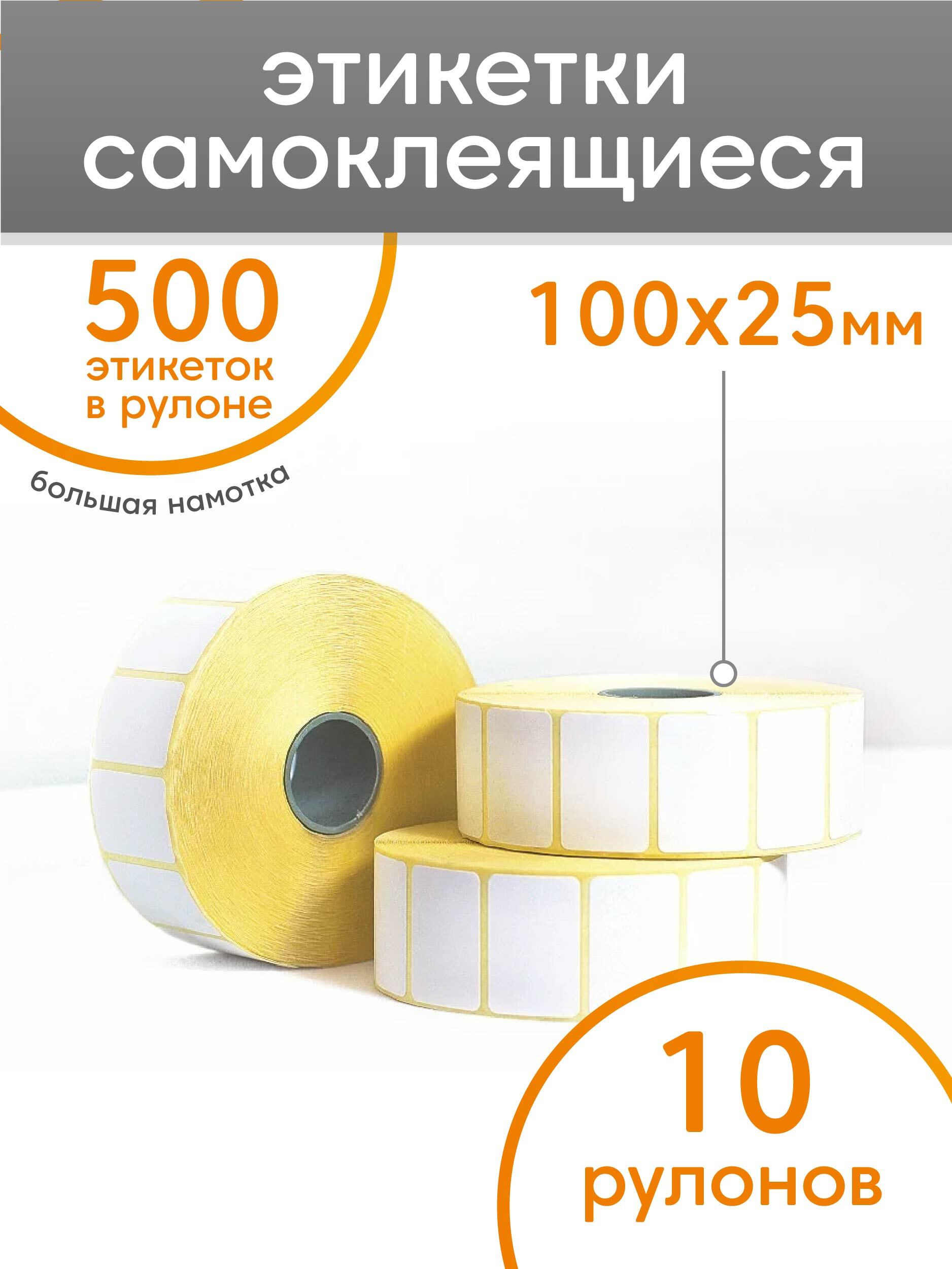 Этикетки самоклеящиеся 100х25мм, 500 термоэтикеток ЭКО в рулоне, 10 рулонов в упаковке