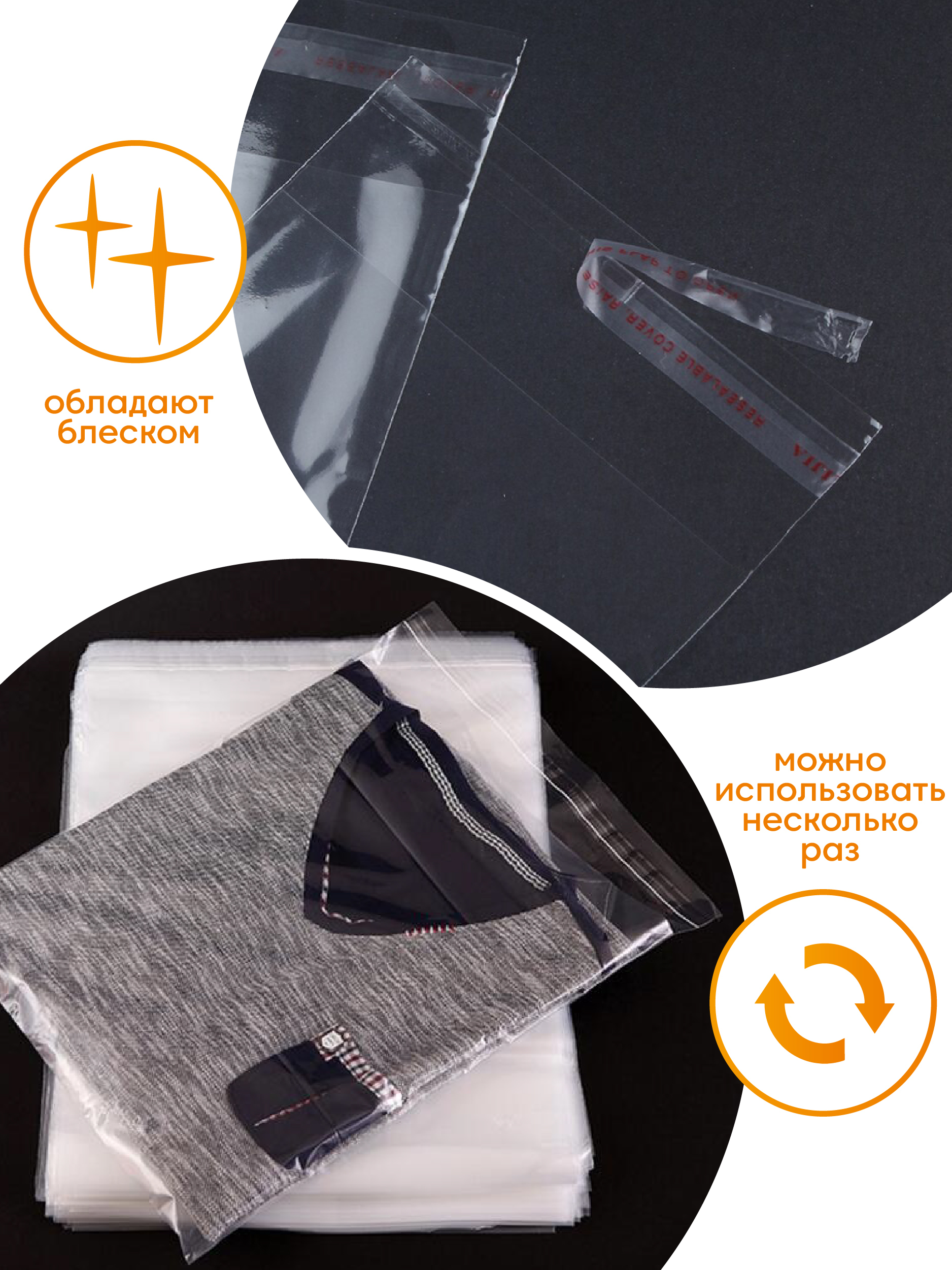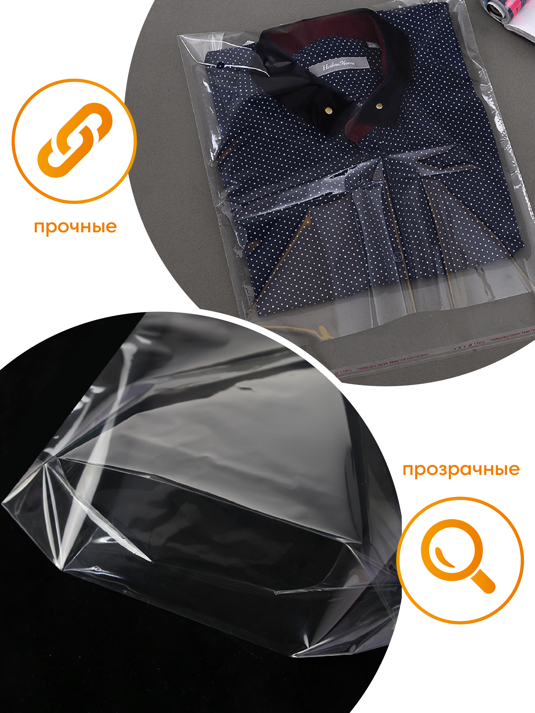 Пакеты с клеевым клапаном прозрачные упаковочные 40х50см+5см 200шт в упаковке