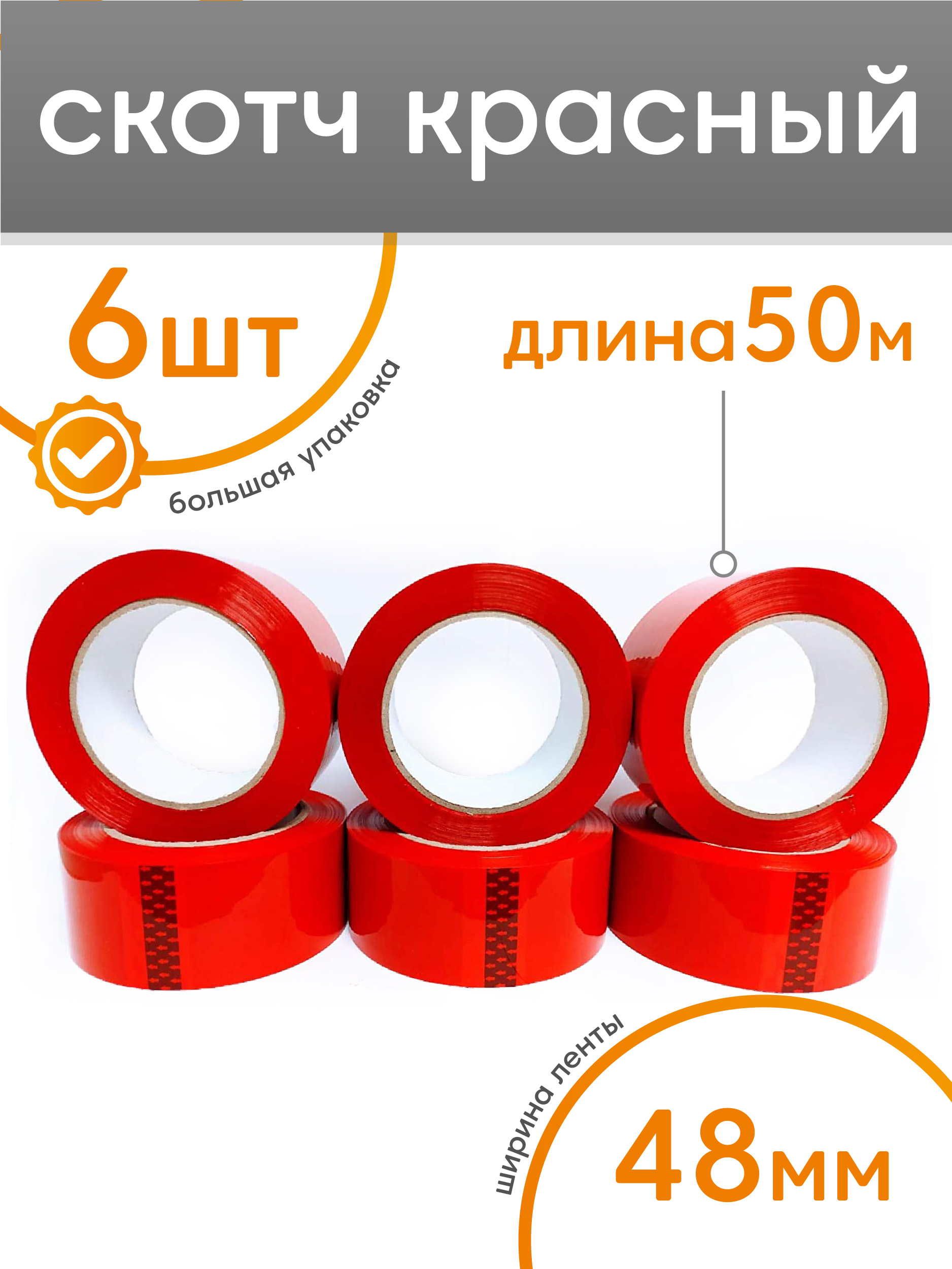 Скотч красный клейкая лента цветная упаковочная 48ммх50м упаковка 6 рулонов