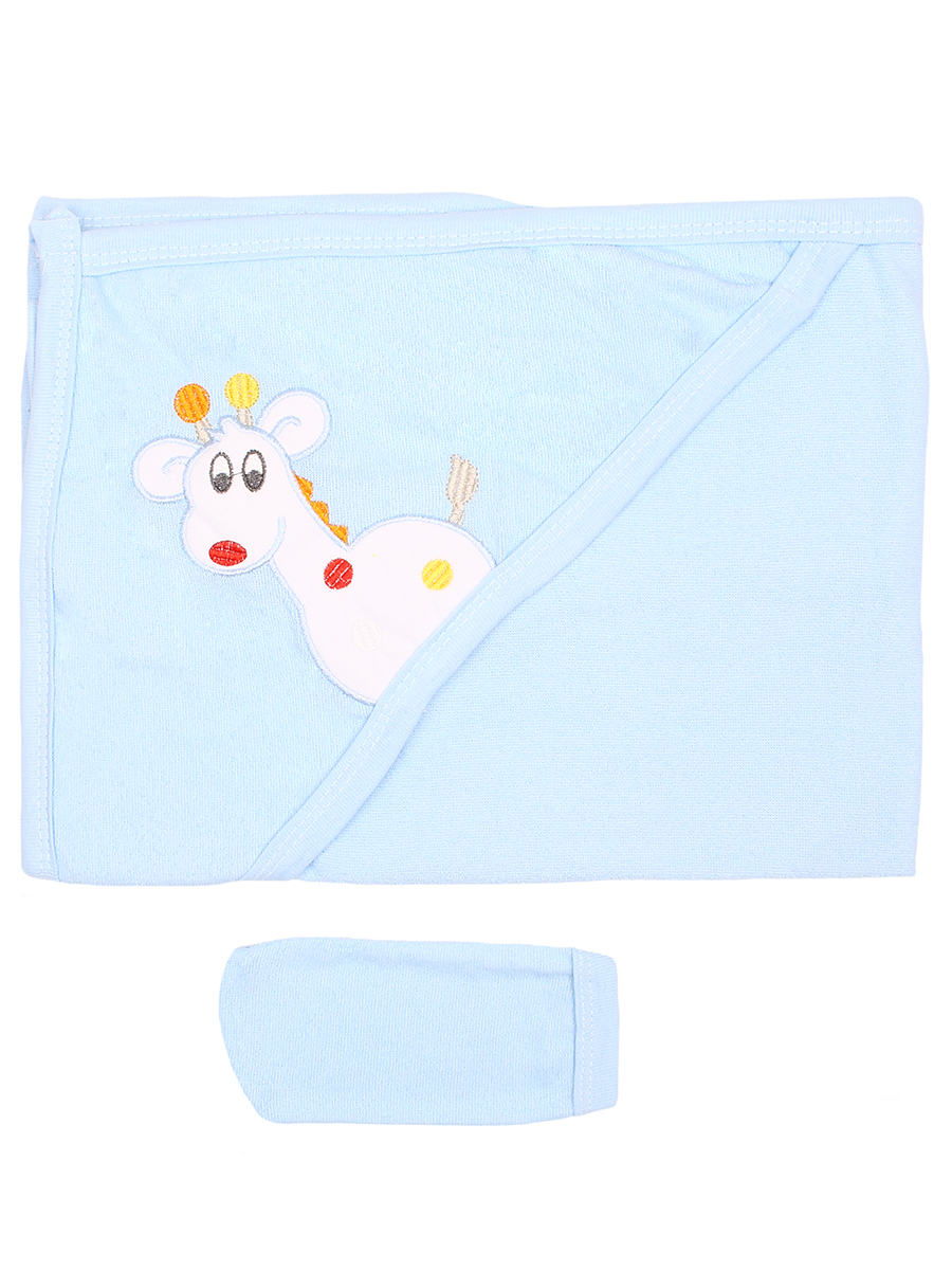Пеленка махровая с уголком и варежкой для купания Maksi-junior Жирафик голубой