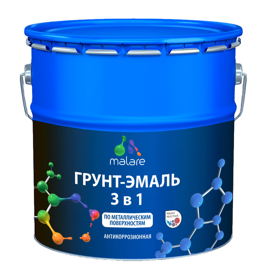 Грунт-эмаль, Краска Malare Антикоррозионная 3 в 1 Быстросохнущая, Акриловая, Матовое покрытие, 2.5 кг, синий