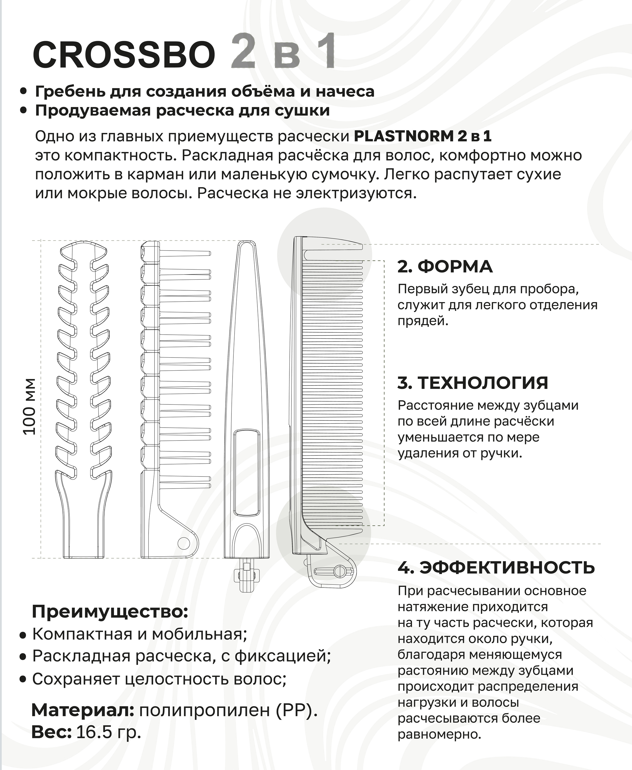 CROSSBO 2 в 1 Расческа складная/раскладная маленькая/компактная/ раскладушка/для пробора