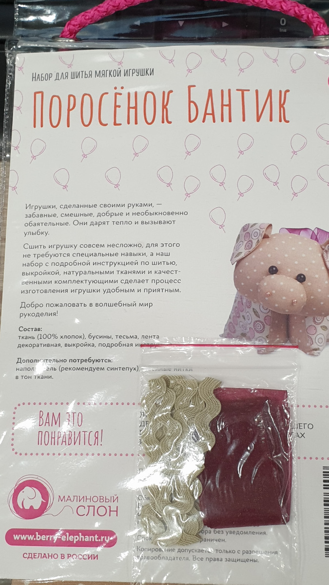Набор для шитья игрушки Малиновый Слон "Поросёнок Бантик"