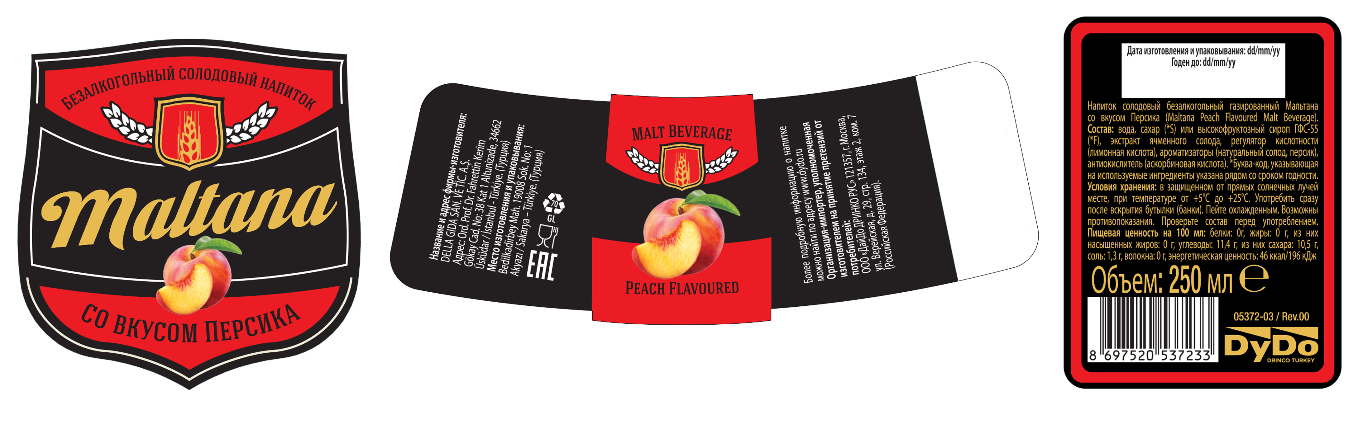 Напиток солодовый безалкогольный газированный Мальтана со вкусом Персика