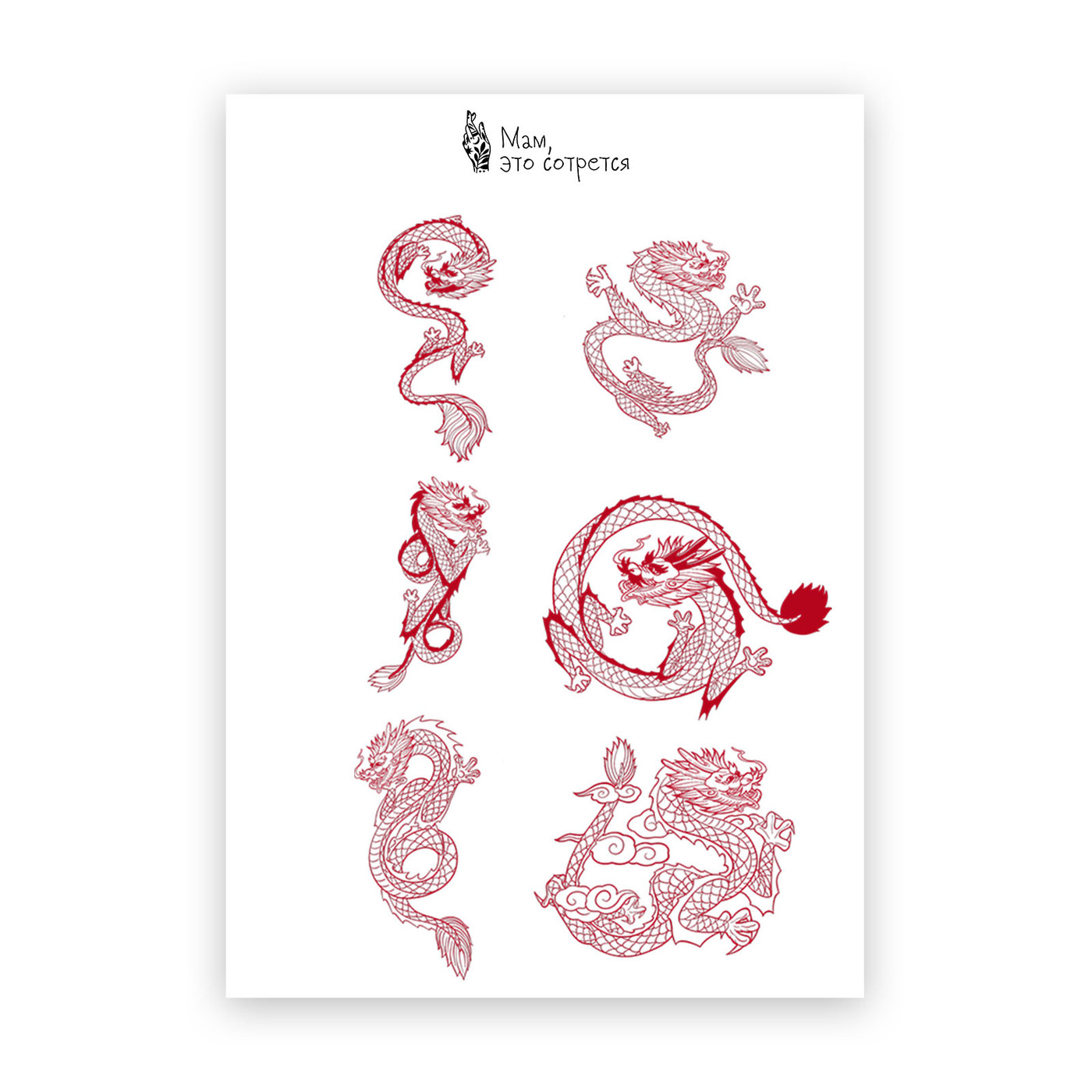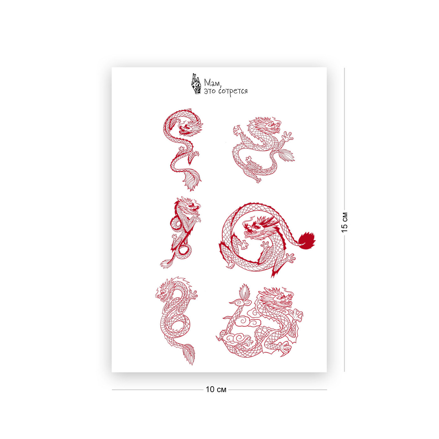 Мам, это сотрётся / Набор переводных татуировок "Дракон" / 10x15 см