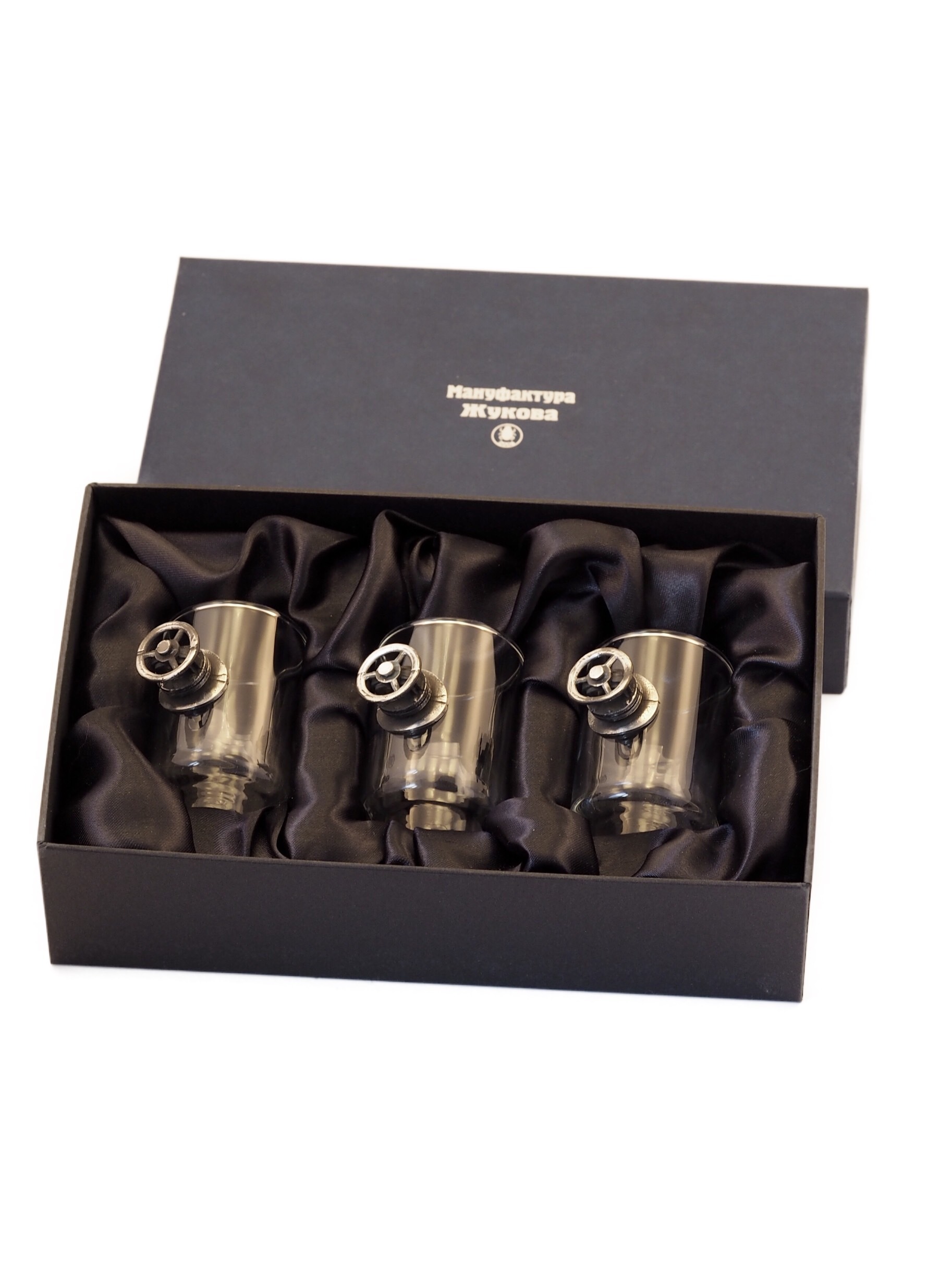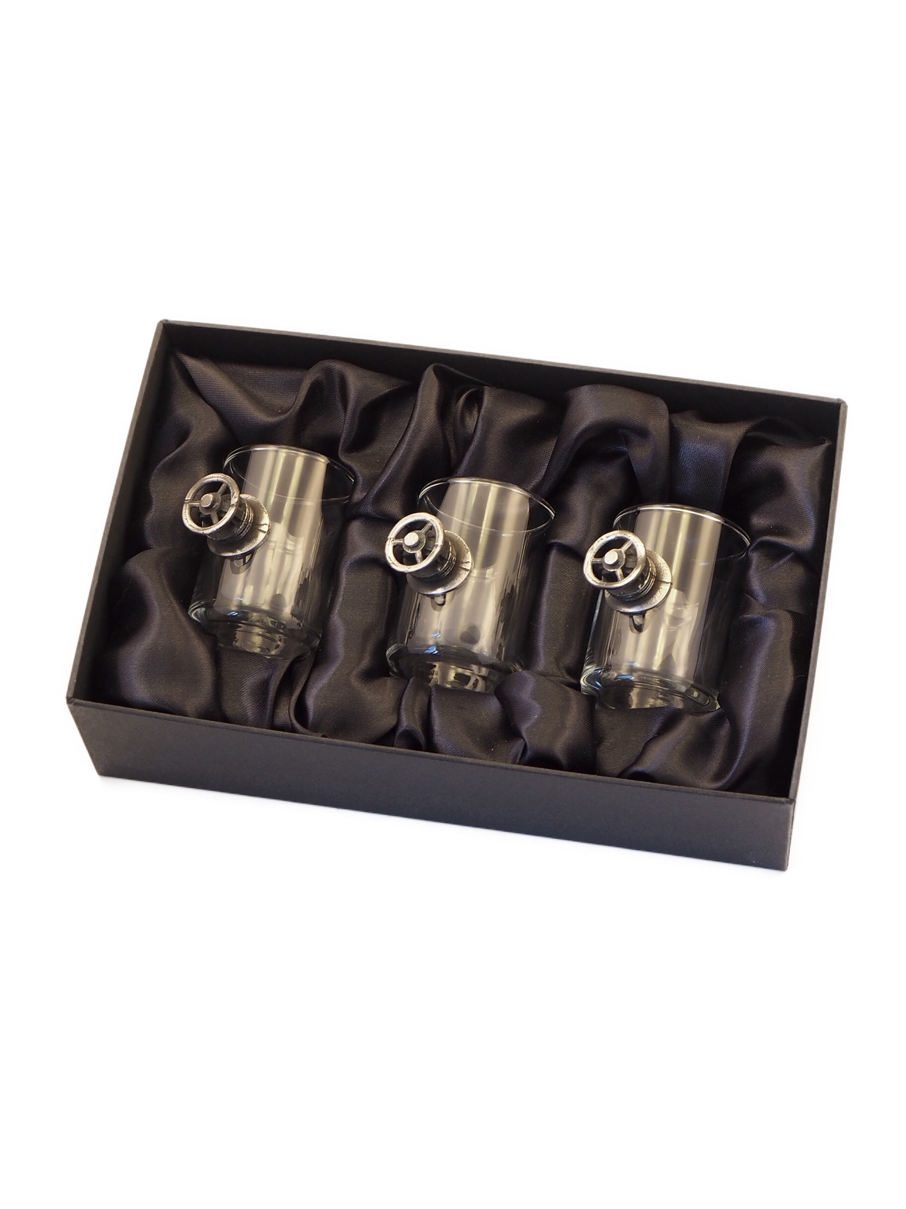 Набор 3 стопки для водки "Вентиль" подарок нефтянику, газовщику, водопроводчику, подводнику