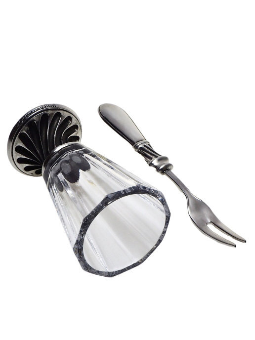 Рюмка граненая хрустальная лафитник 25 мл для водки и закусочная вилка в футляре