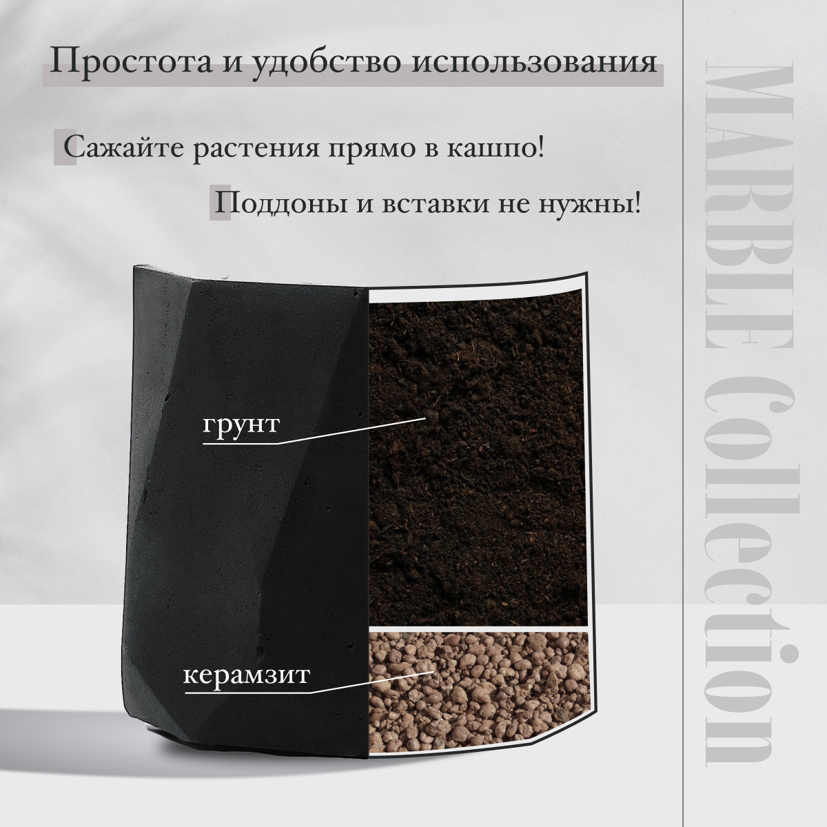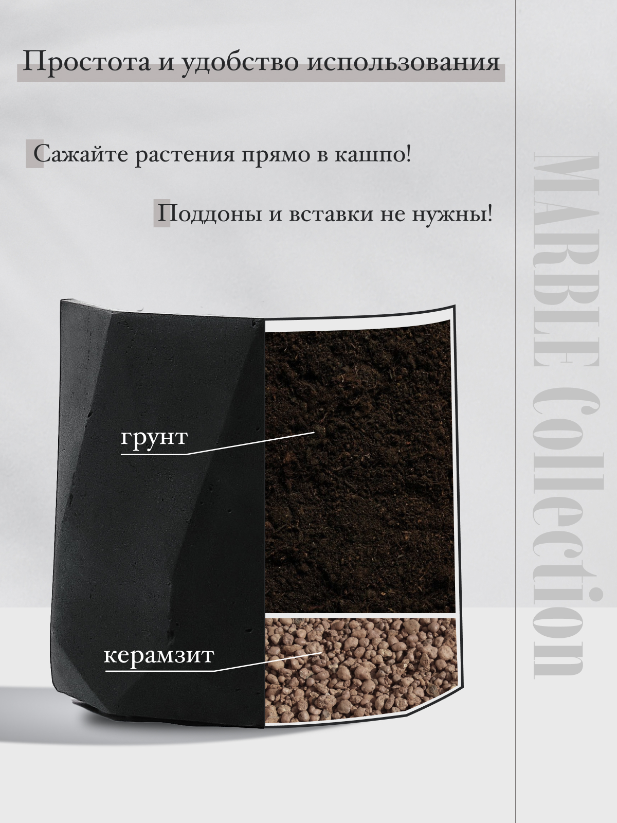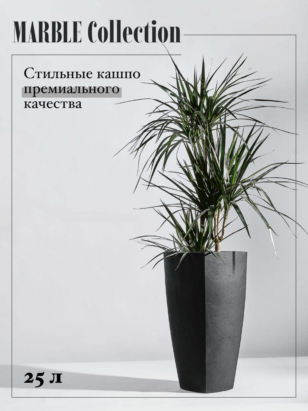 Кашпо, Горшок для цветов Marble Collection, Черный камень, 26 см х 29 см, 12 л, 1 шт