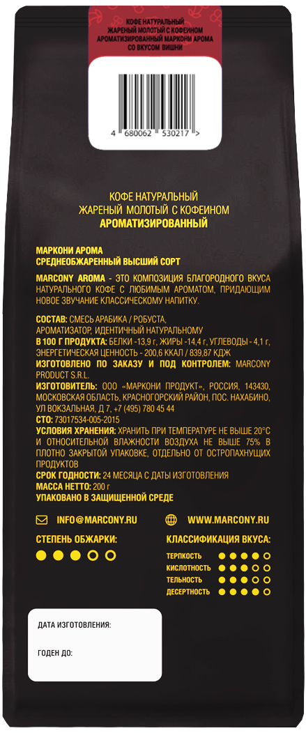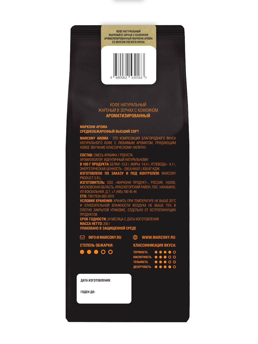 Кофе в зернах MARCONY AROMA со вкусом Лесного ореха (200г) м/у