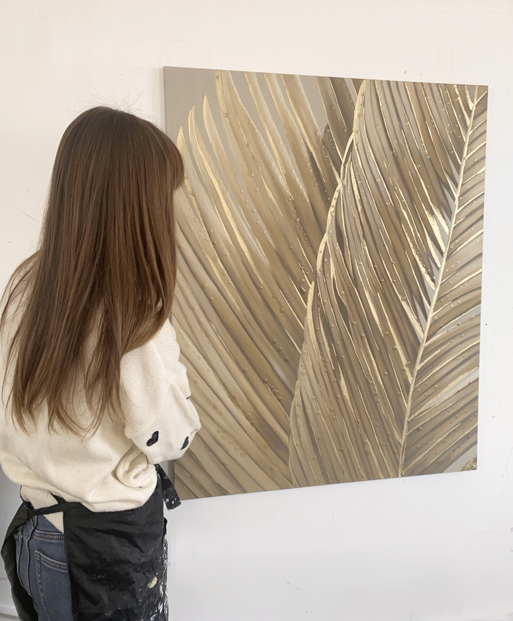 Картина интерьерная на холсте "Пальмовые ветви" 100х80/Ручная работа/Авторская картина
