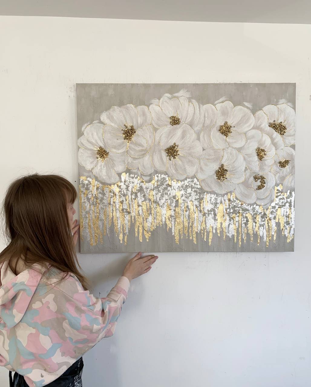Картина интерьерная на холсте "Весенние цветы" 90х69/Ручная работа/Авторская картина
