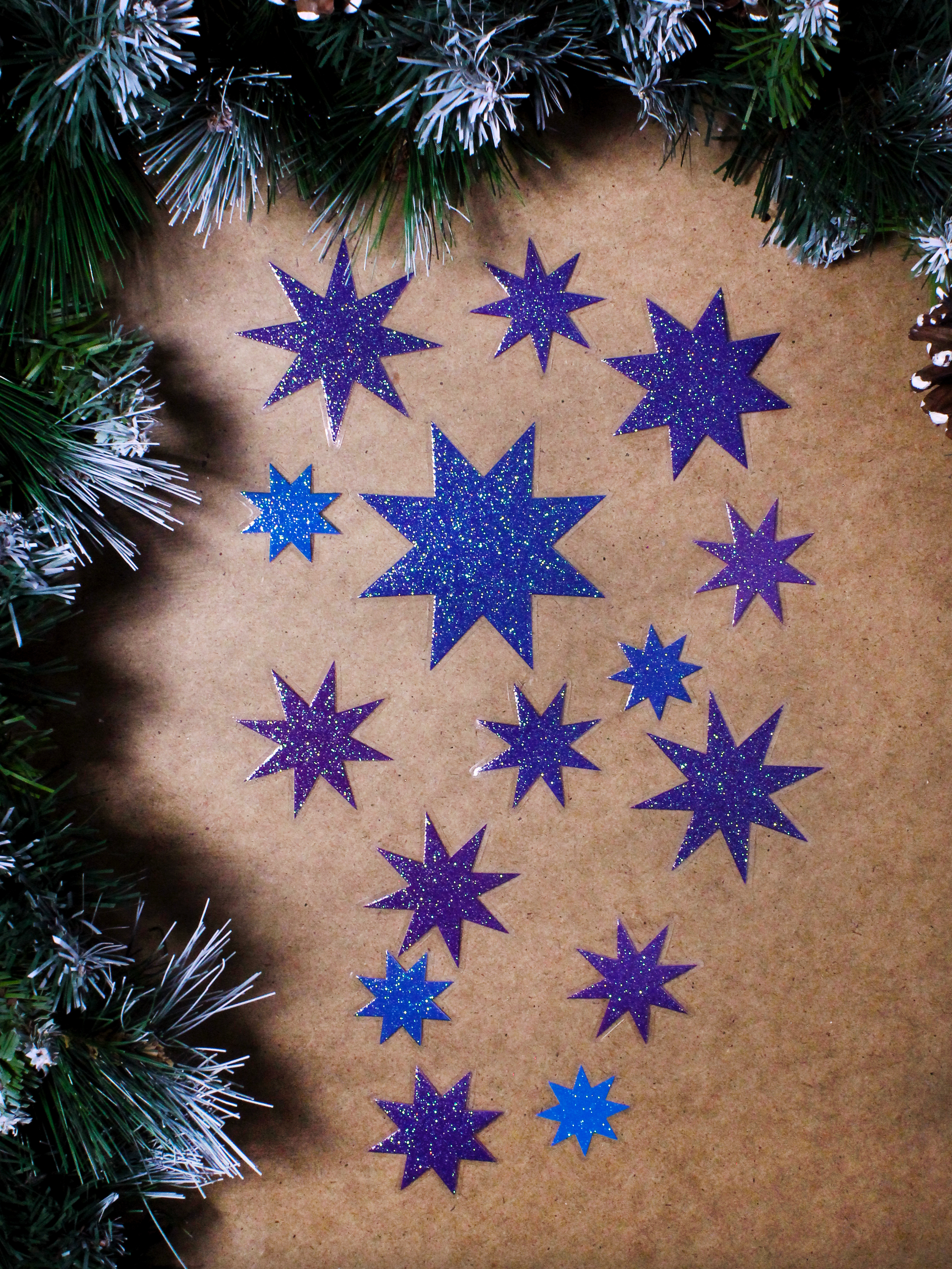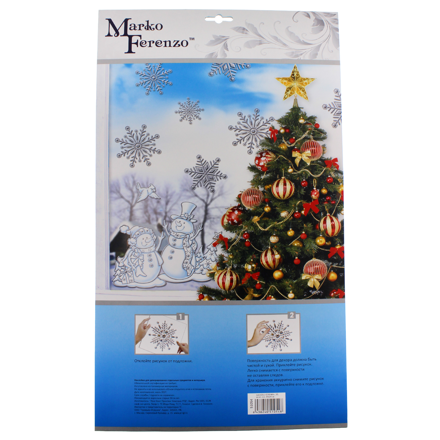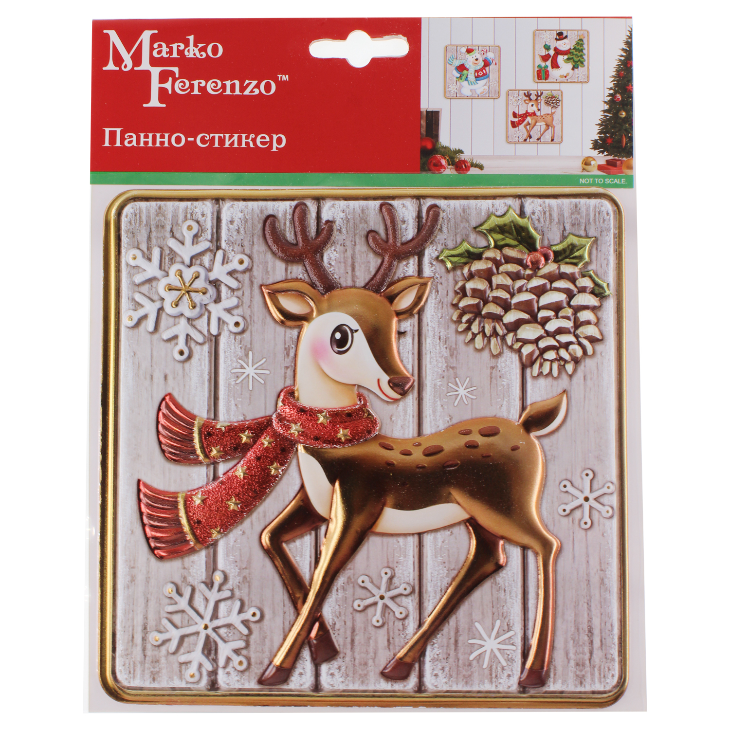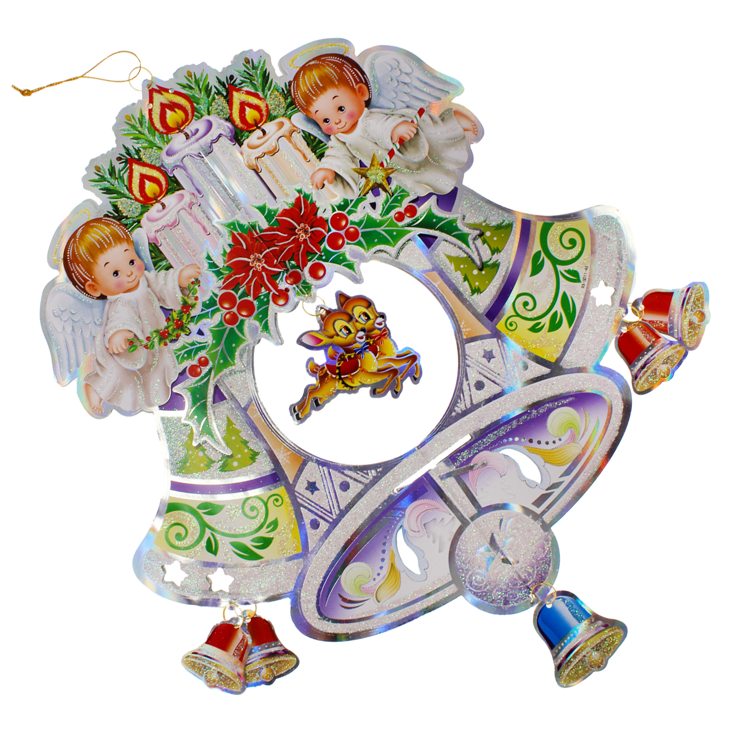 Наклейка праздничная новогодняя "РОЖДЕСТВО", ассорт 4шт, полноцветн, 2-сторон, глиттер 20*30CM