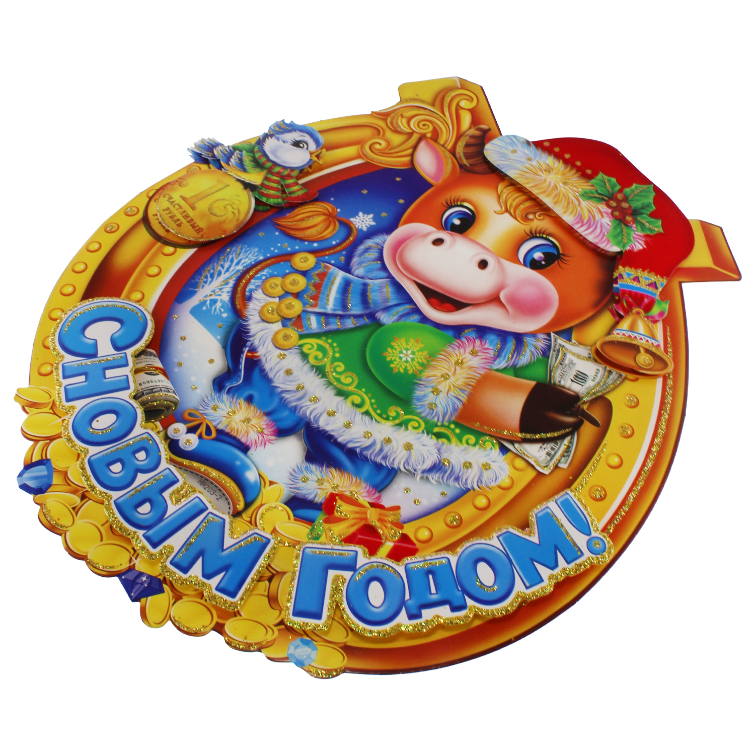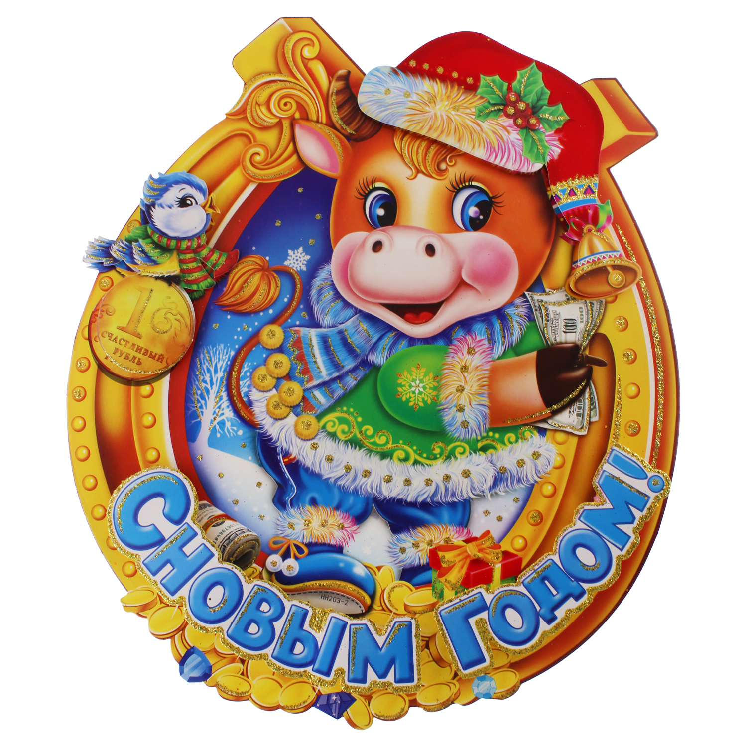 Наклейка "Бык на счастье с подковой", 3D, 32,5*38*1,2 см