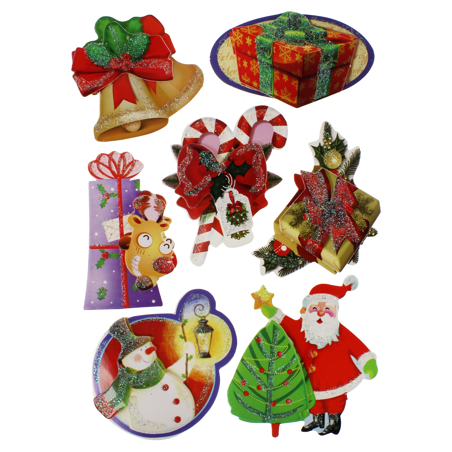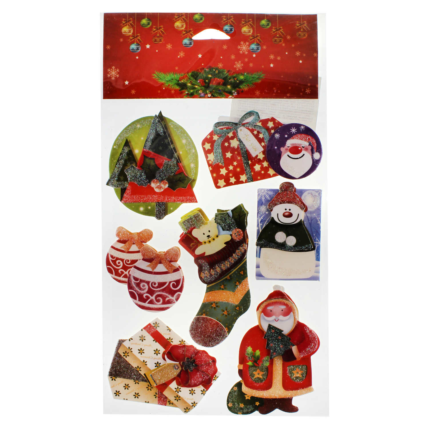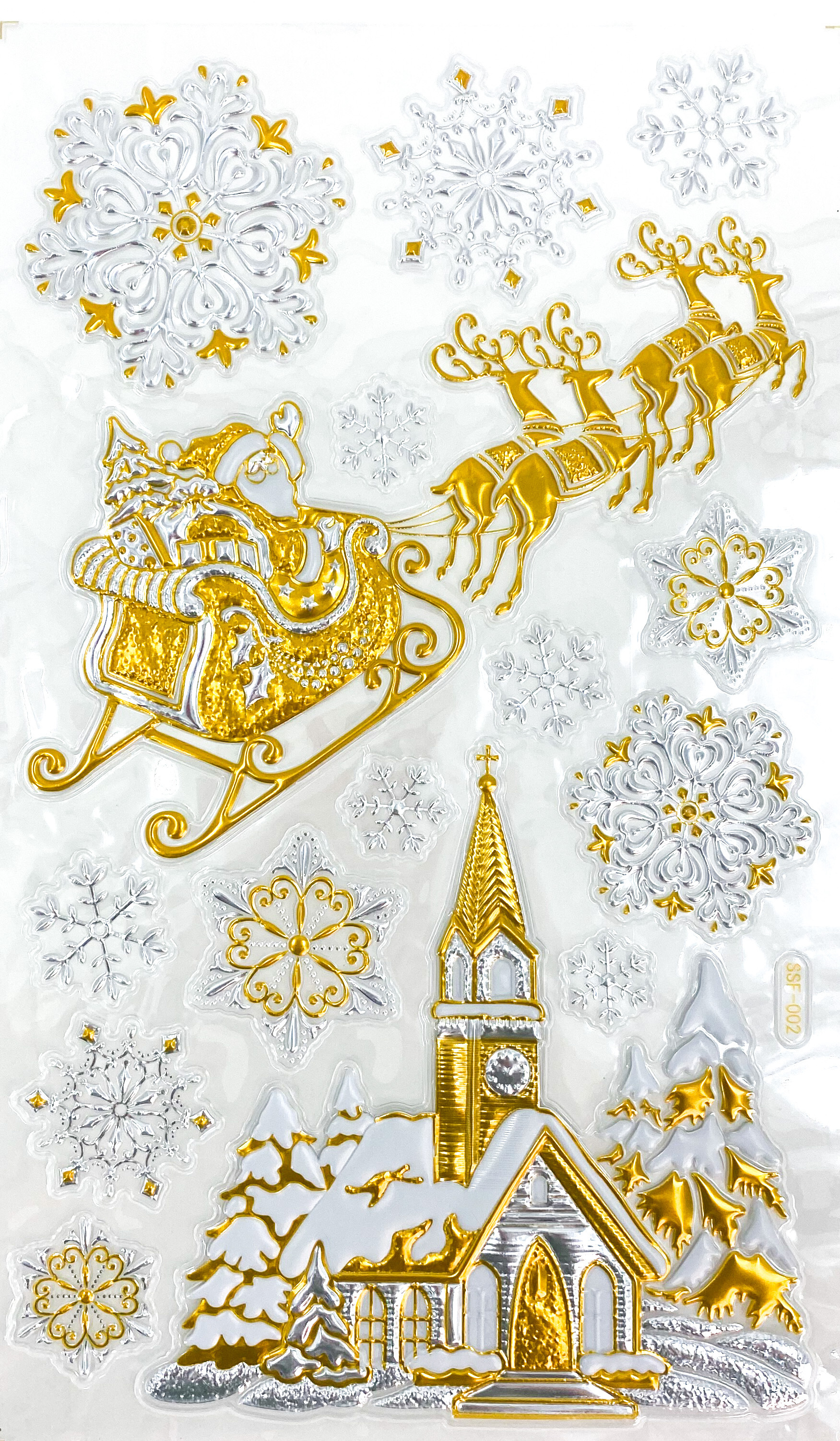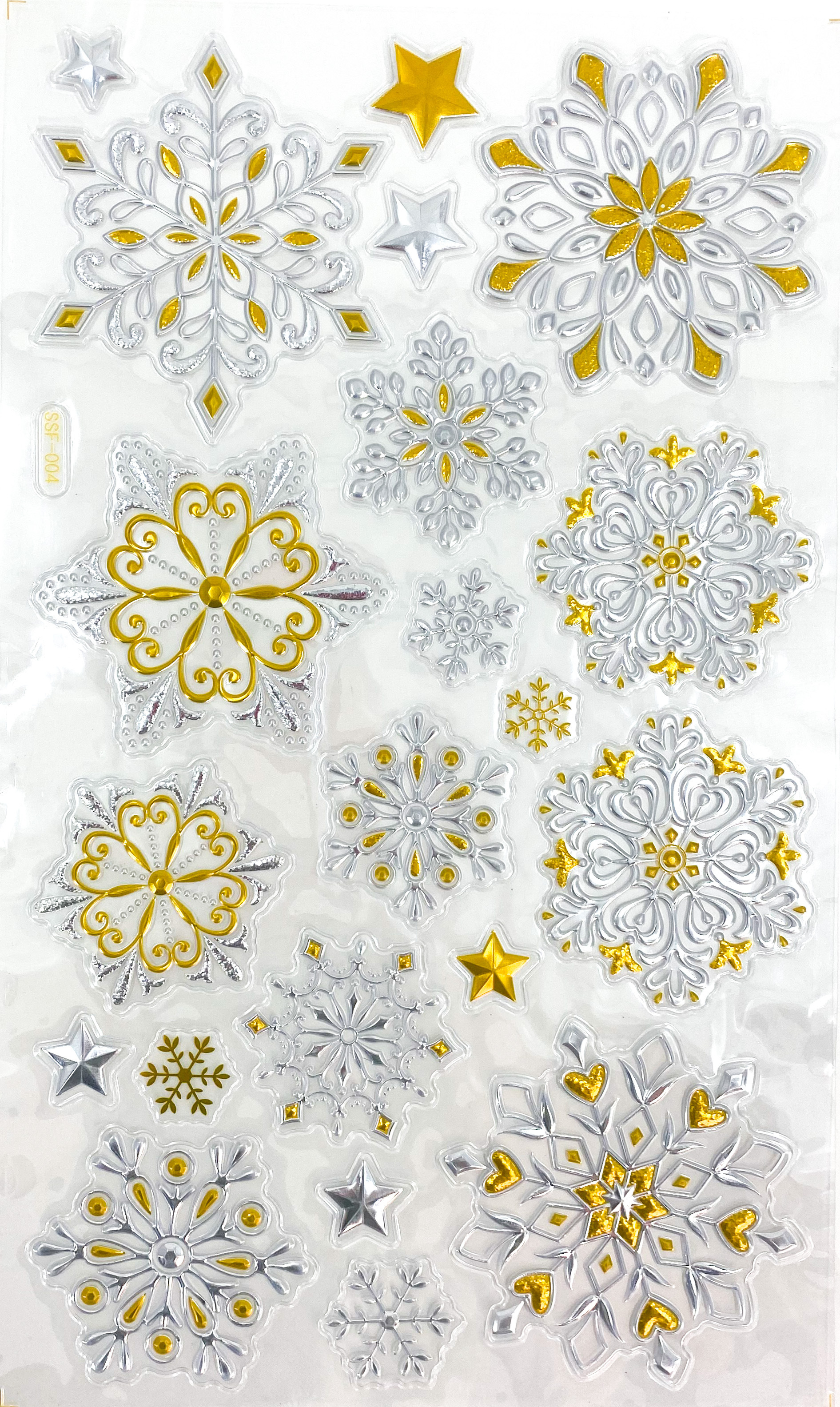 Наклейка гелевая, объемная "Снежинки разноцветные" (2 дизайна ), размер см. 20х20х03