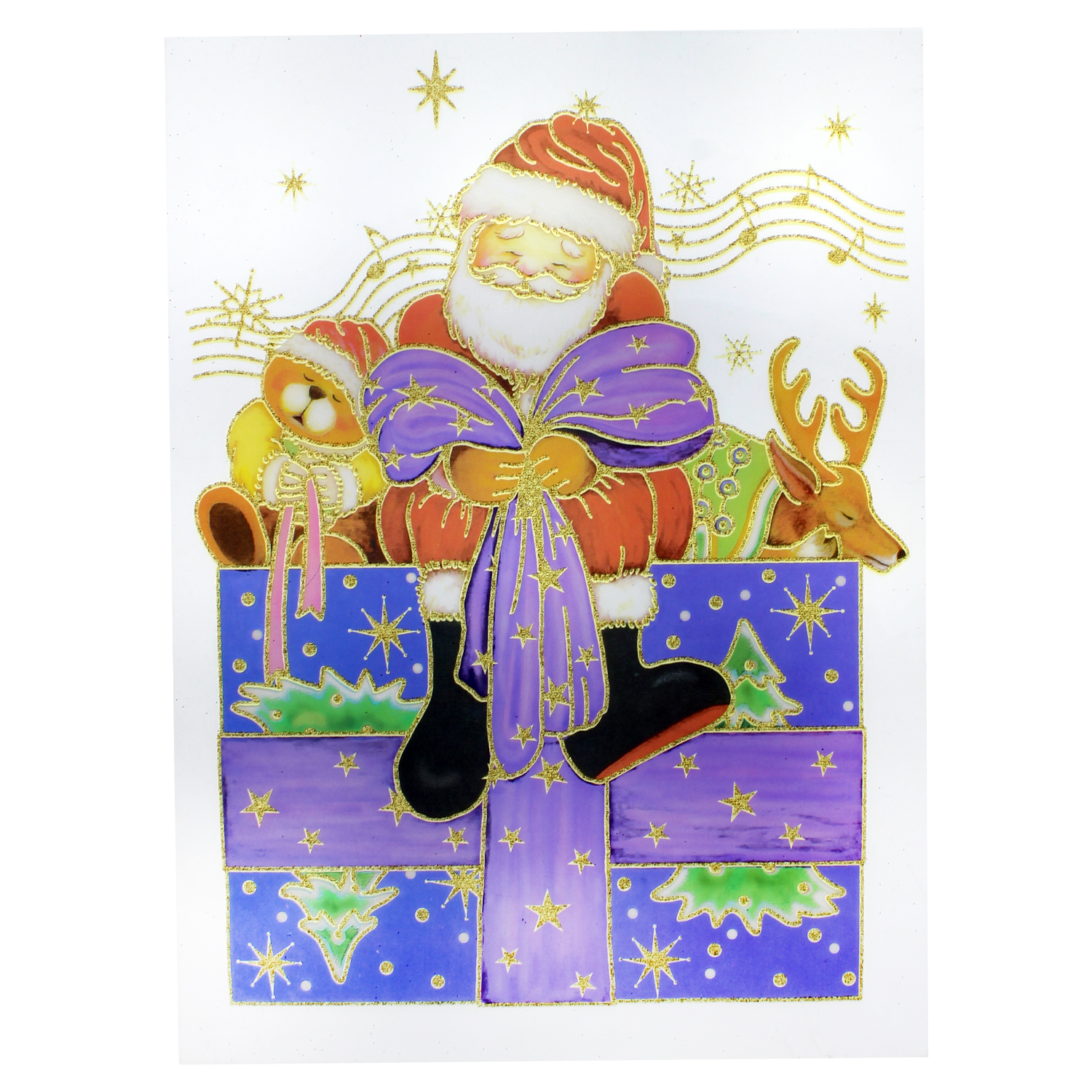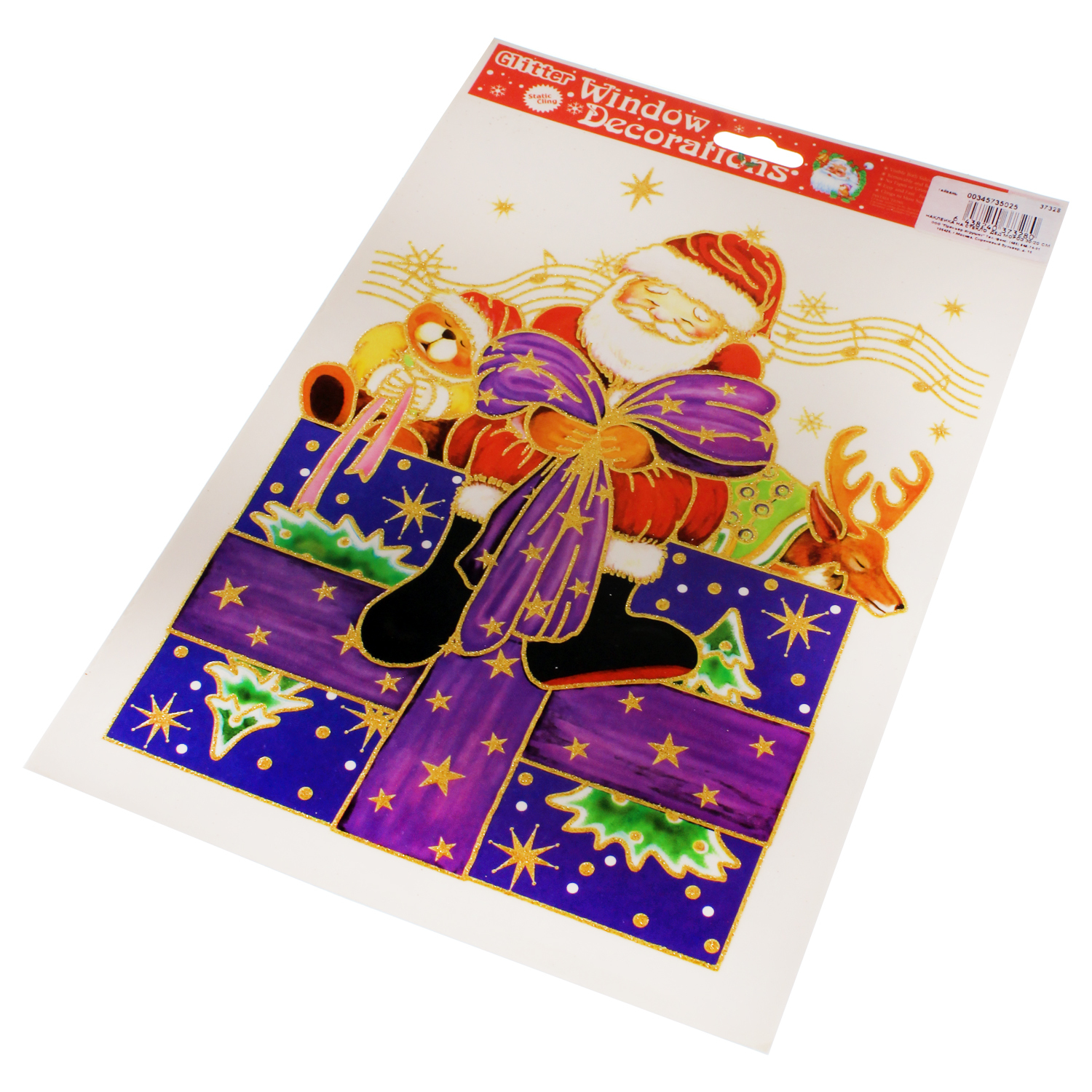 Наклейка праздничная новогодняя на стекло "ДЕД МОРОЗ С ПОДАРКАМИ" 30/20 см