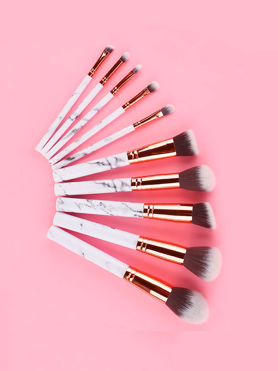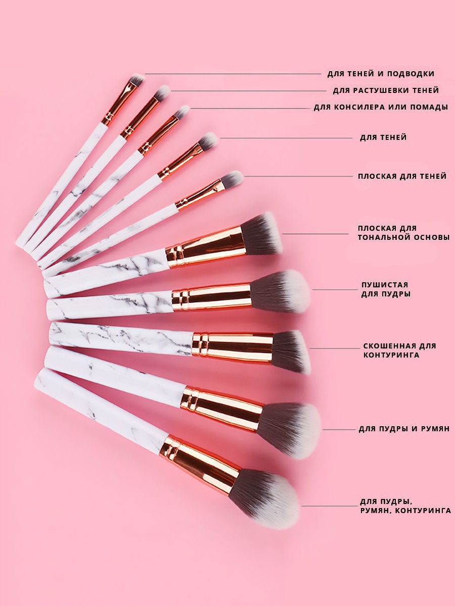 Набор кистей для макияжа в косметичке Marble, 10 шт./ Набор кистей для макияжа / профессиональные кисти для макияжа/кисти для макияжа/набор кистей