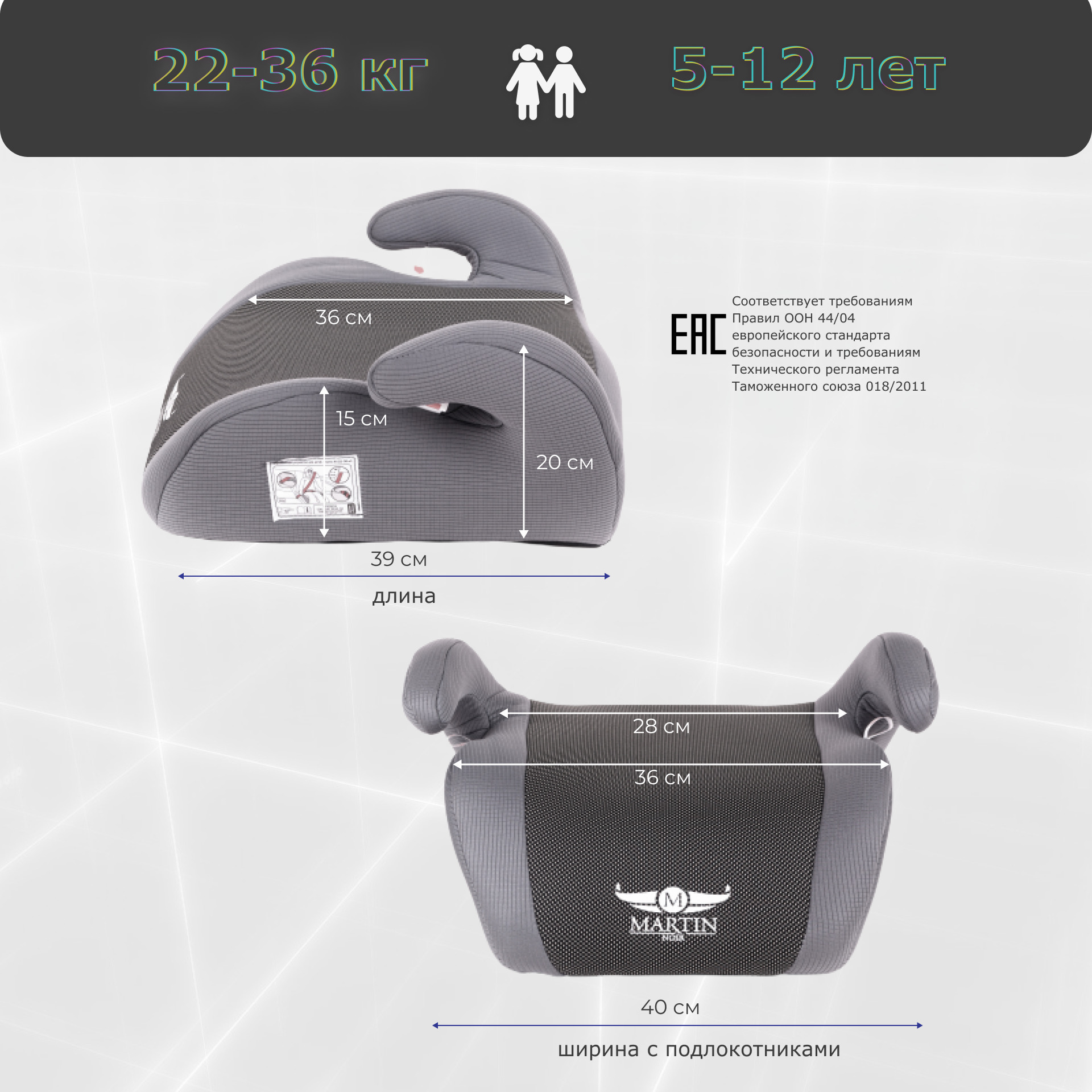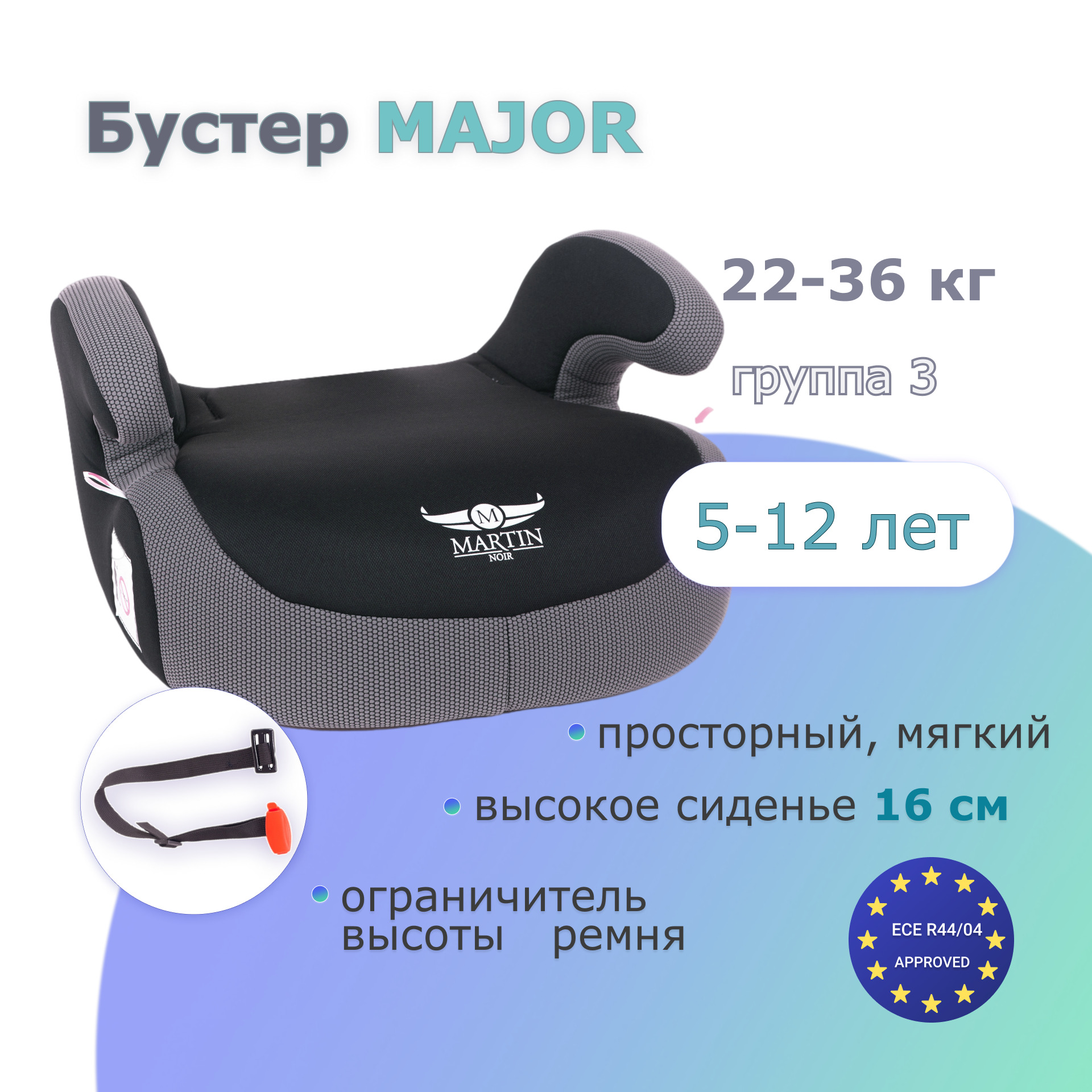 Автокресло детское с 9 мес до 12 лет, 9-36 кг, 1/2/3, PIONEER Elite Gray field, Martin noir
