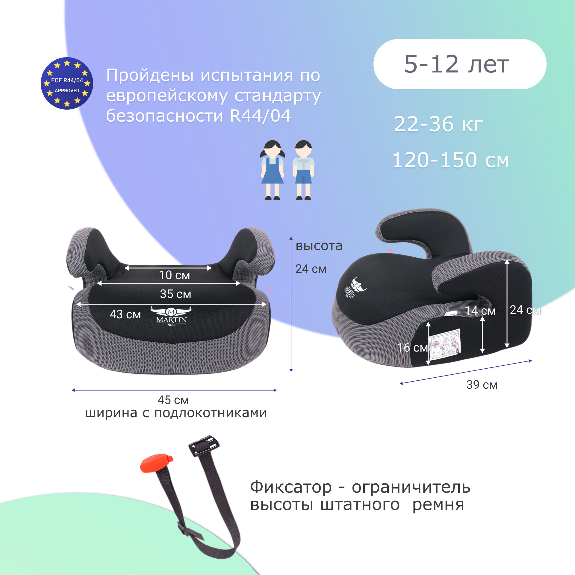 Бустер автомобильный детский YOGA, 22-36 кг, автокресла 3 группа, Purple Fume , BAB002