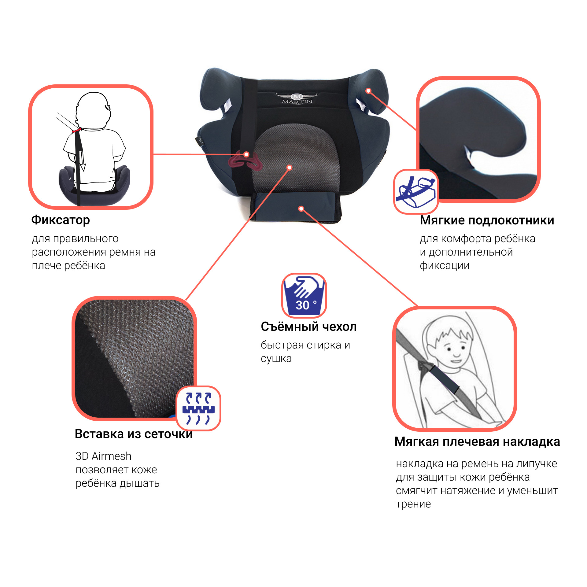 Martin Noir/ Бустер автомобильный детский Humbi Silver black HB-27, с регулируемым Isofix, 22-36 кг