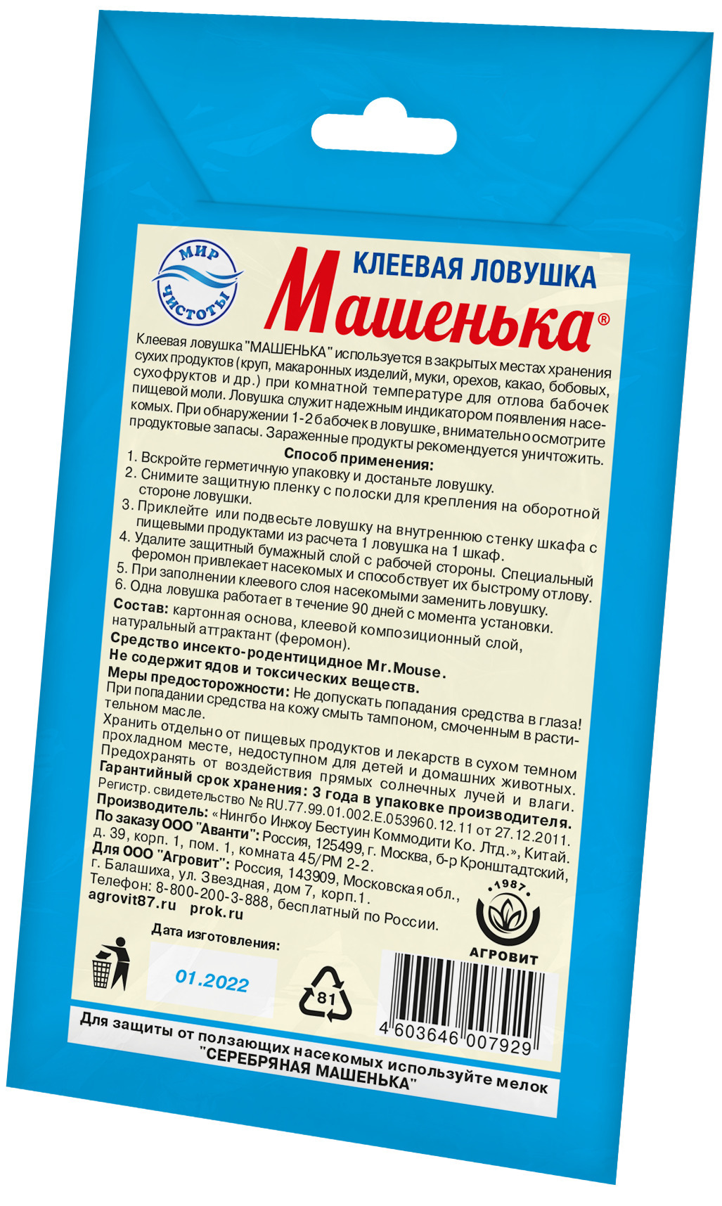Клеевая ловушка от пищевой моли Машенька 2 ловушки в упаковке