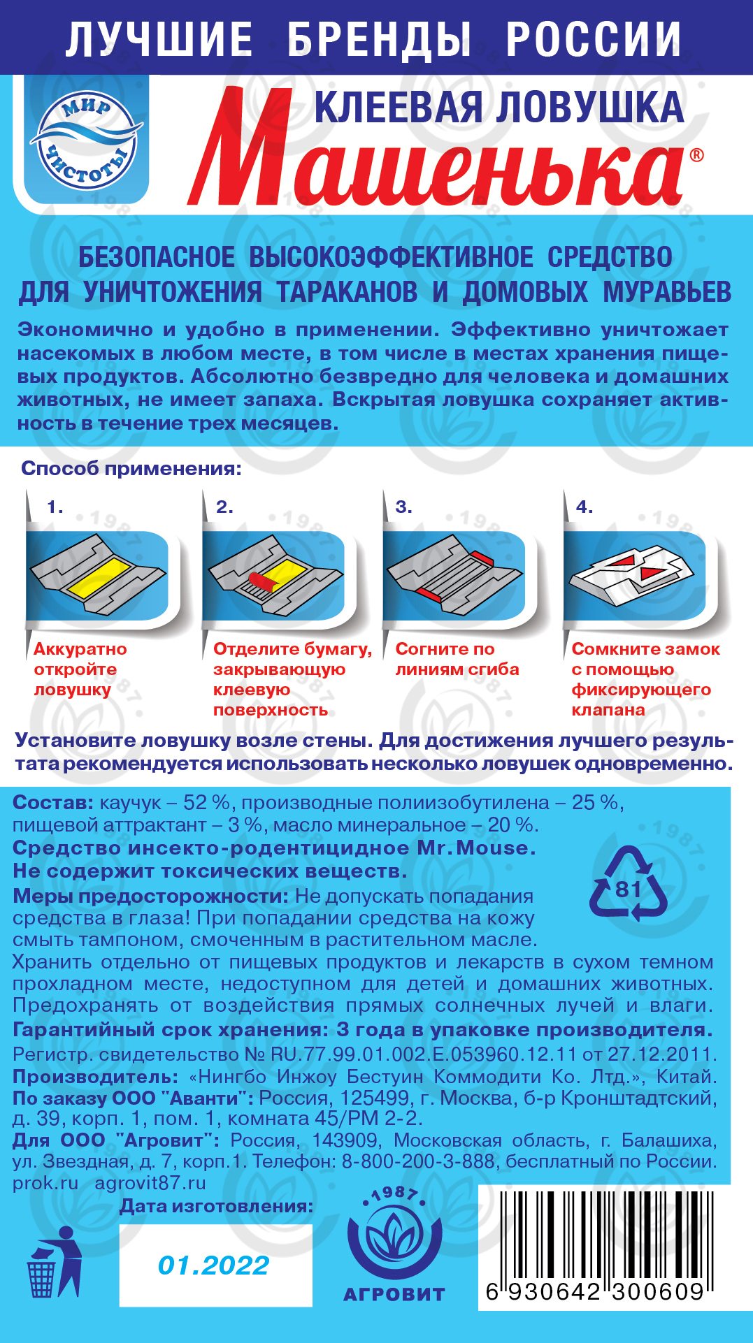 Машенька клеевая ловушка от тараканов и муравьев, 20 штук
