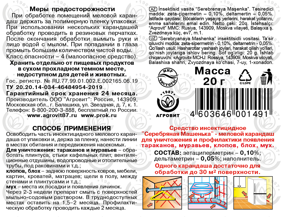 Мелок Машенька для уничтожения: тараканов, муравьев, клопов, мух и прочих насекомых