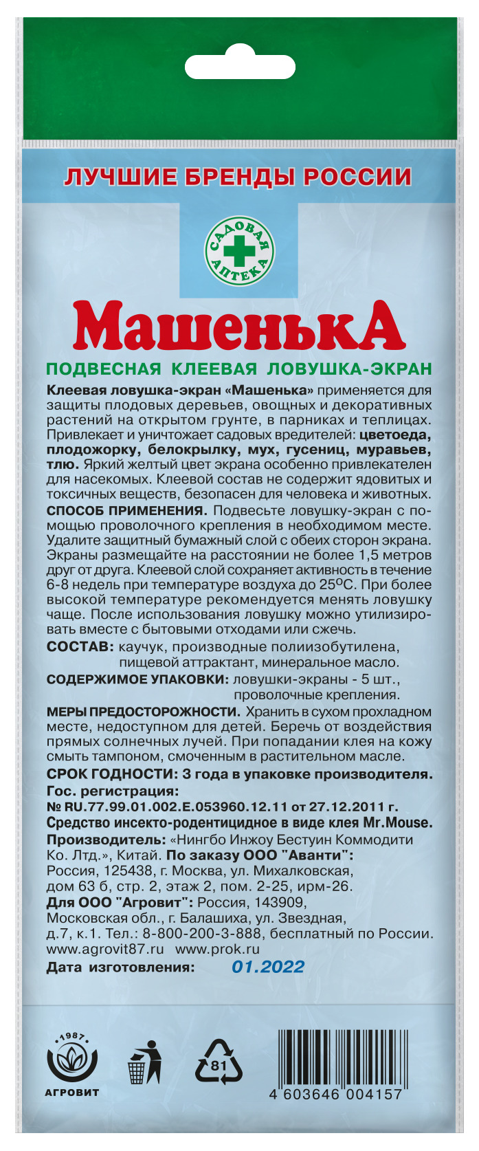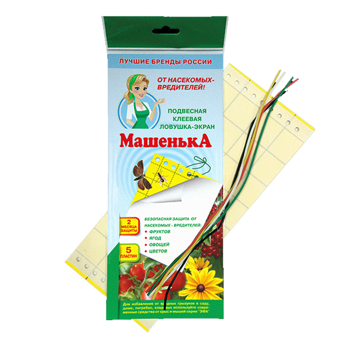 Подвесная клеевая ловушка-экран Машенька от мух, тли и муравьев моли 5 пластин