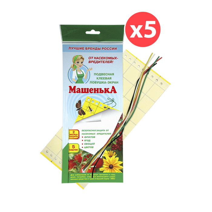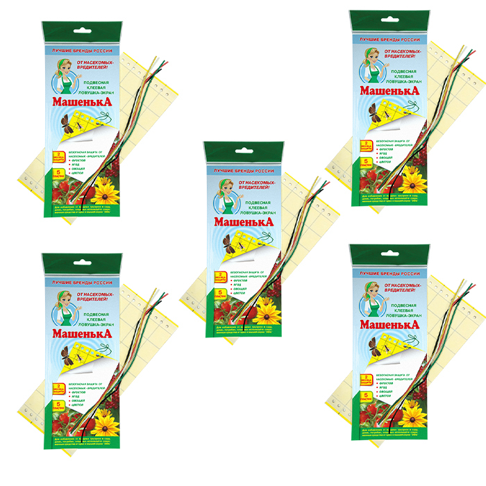 Подвесная клеевая ловушка-экран Машенька (5 пластин) от насекомых-вредителей, 5шт