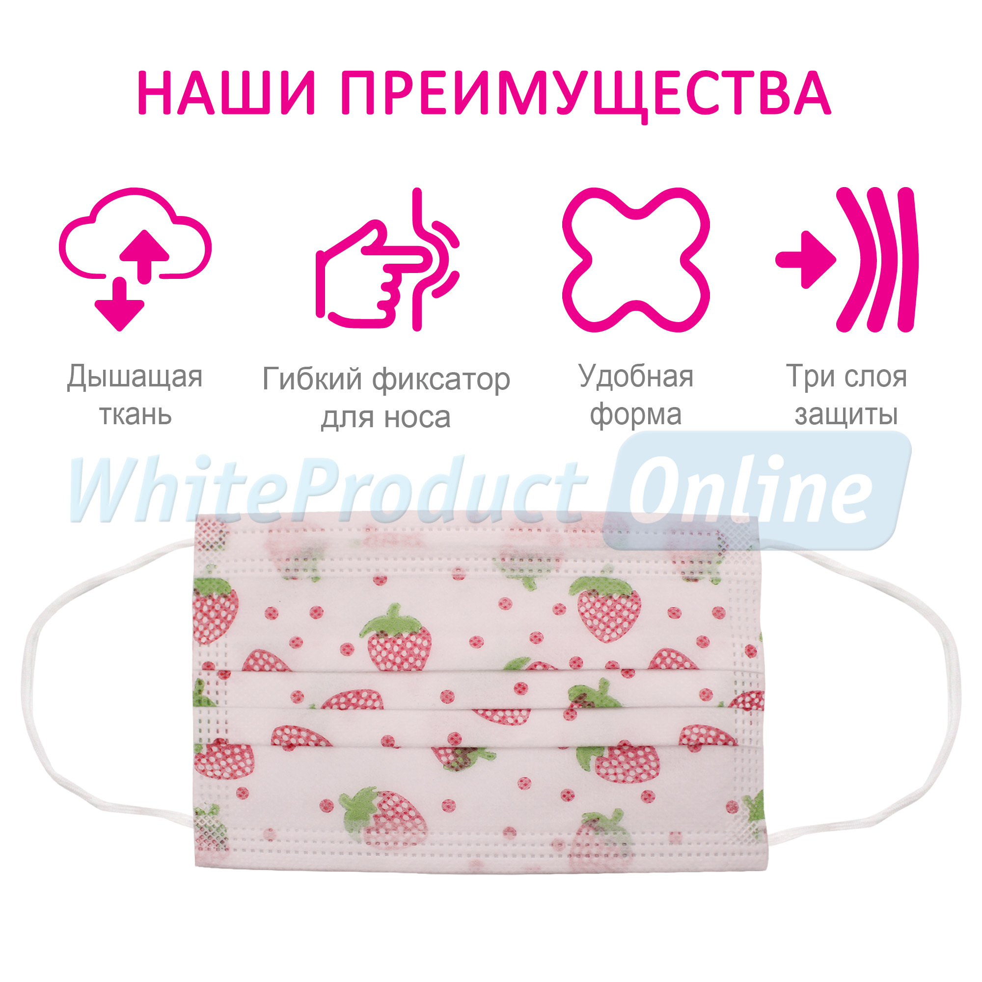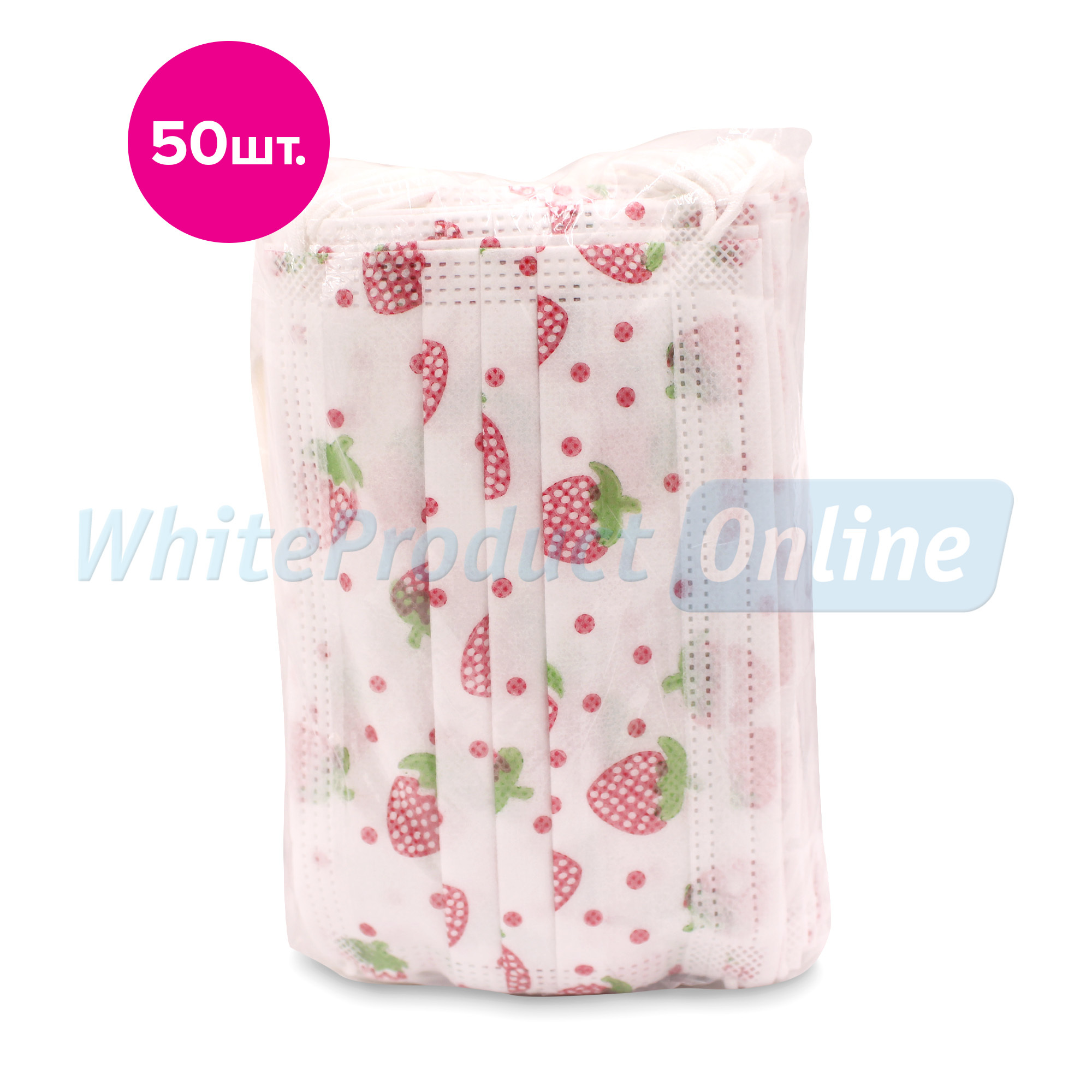Маска гигиеническая детская трёхслойная, 50 шт., рисунок ягодка. Маска медицинская ДЕТСКАЯ