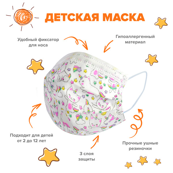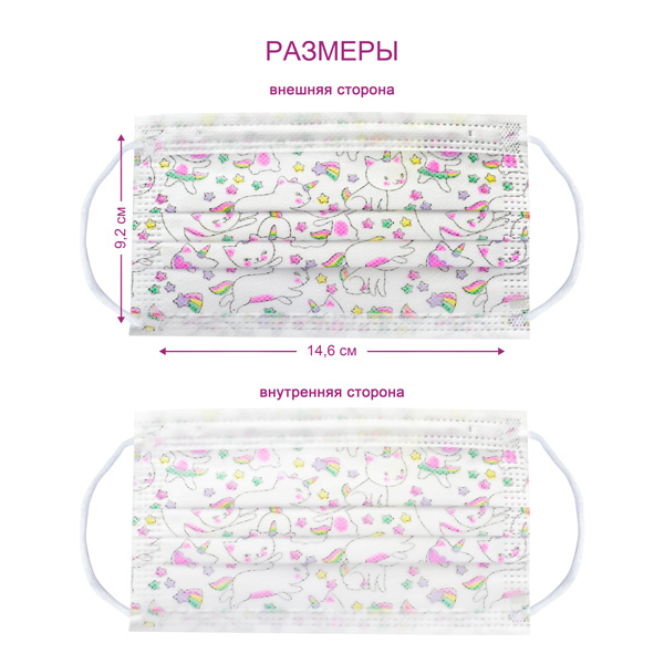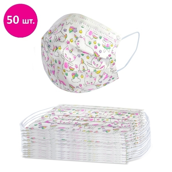 Маска гигиеническая детская трёхслойная, 50 шт., единорожки. Маска медицинская ДЕТСКАЯ, 50 шт