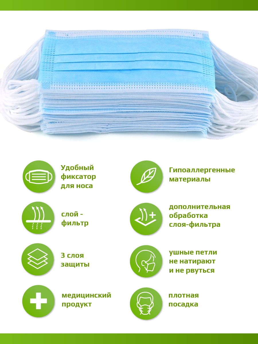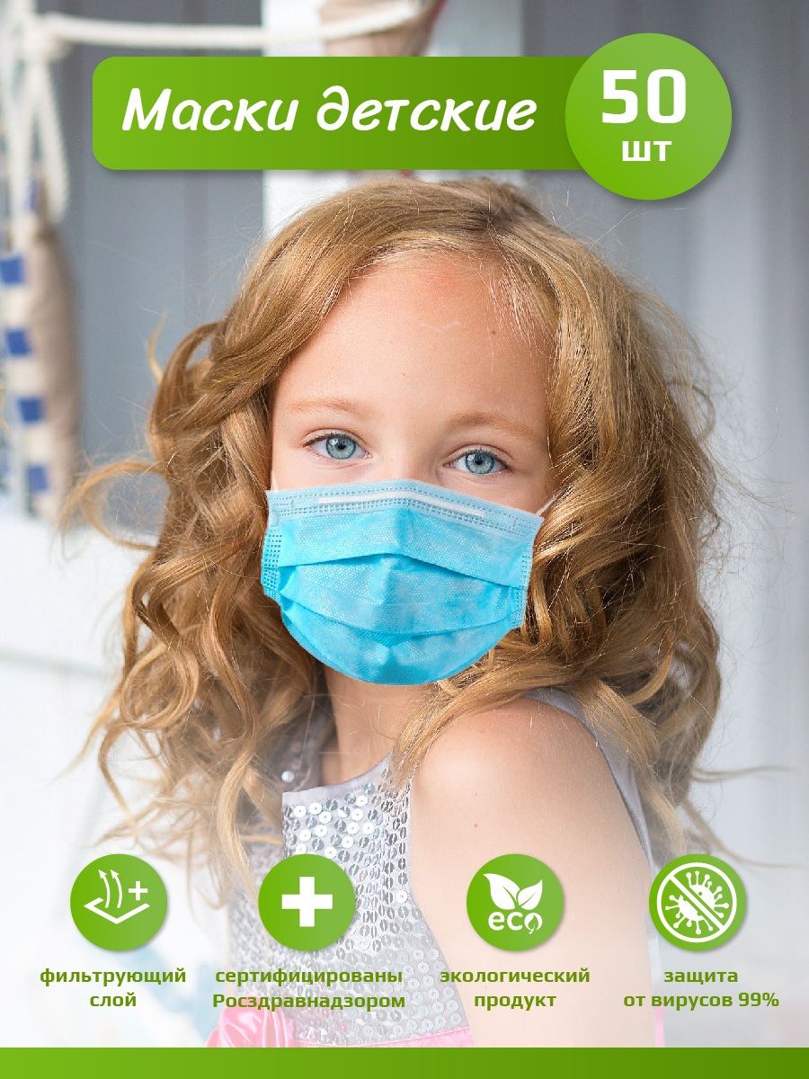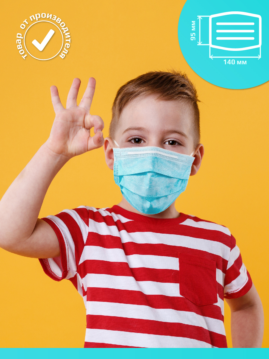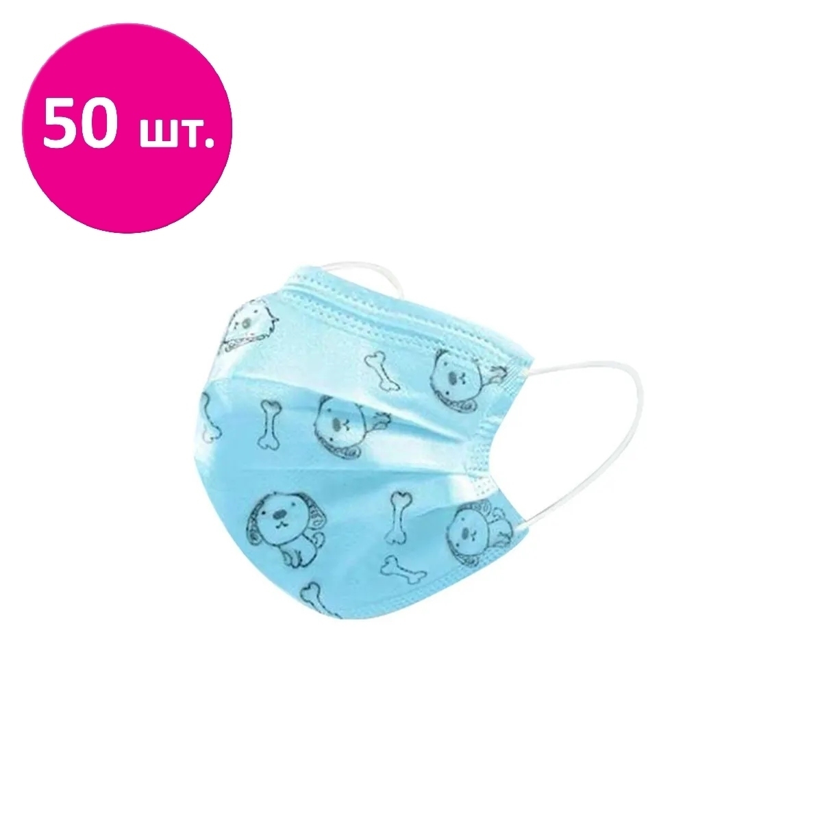 Маска гигиеническая детская трёхслойная, 50 шт., цвет синий. Маска медицинская ДЕТСКАЯ, 50 шт