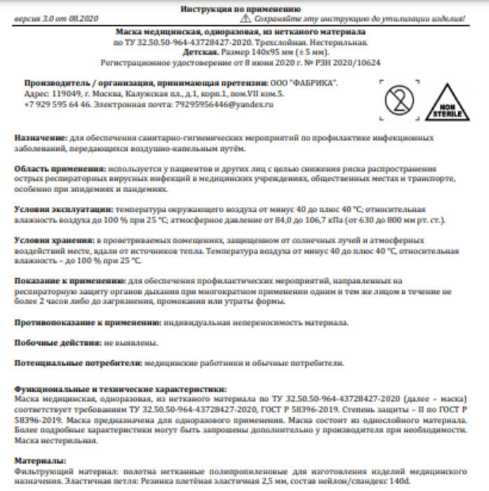 Маска гигиеническая Маска медицинская ДЕТСКАЯ