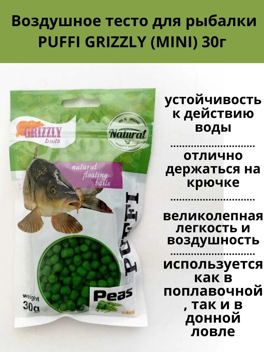 Прикормка для рыбалки Воздушное тесто PUFFI GRIZZLY (ГОРОХ) (MINI) 30г