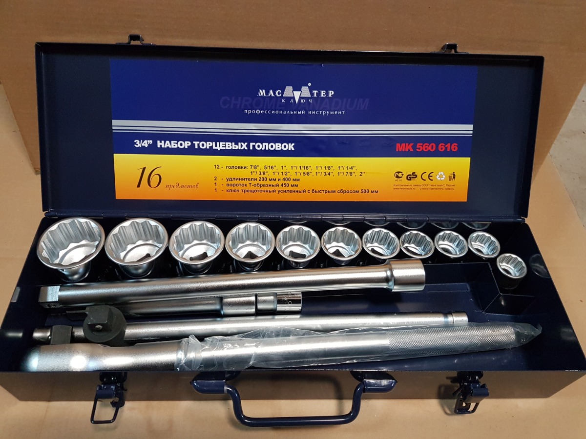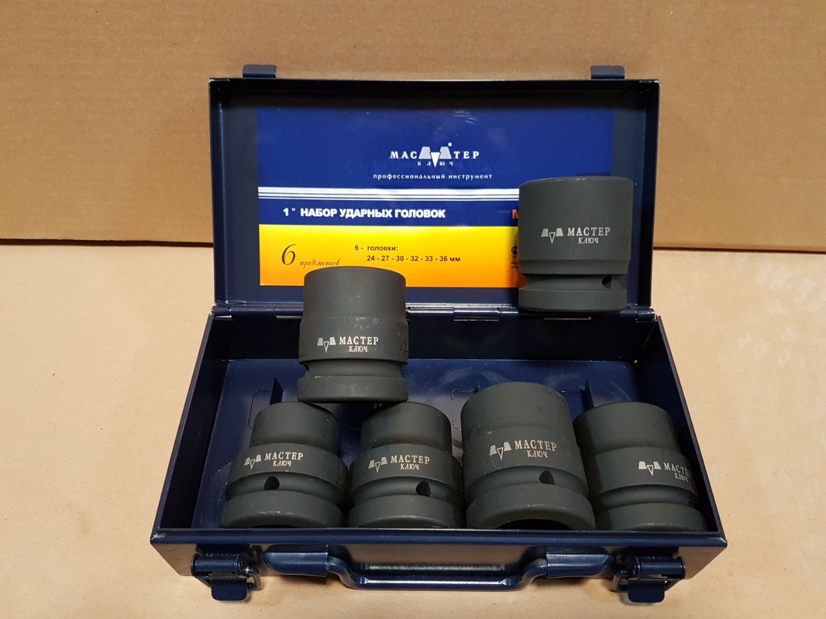 Набор ударных торцевых головок 1", 24-36 мм, 6 шт., CrMo, Тайвань, мет. кейс, Мастер Ключ, МК560606