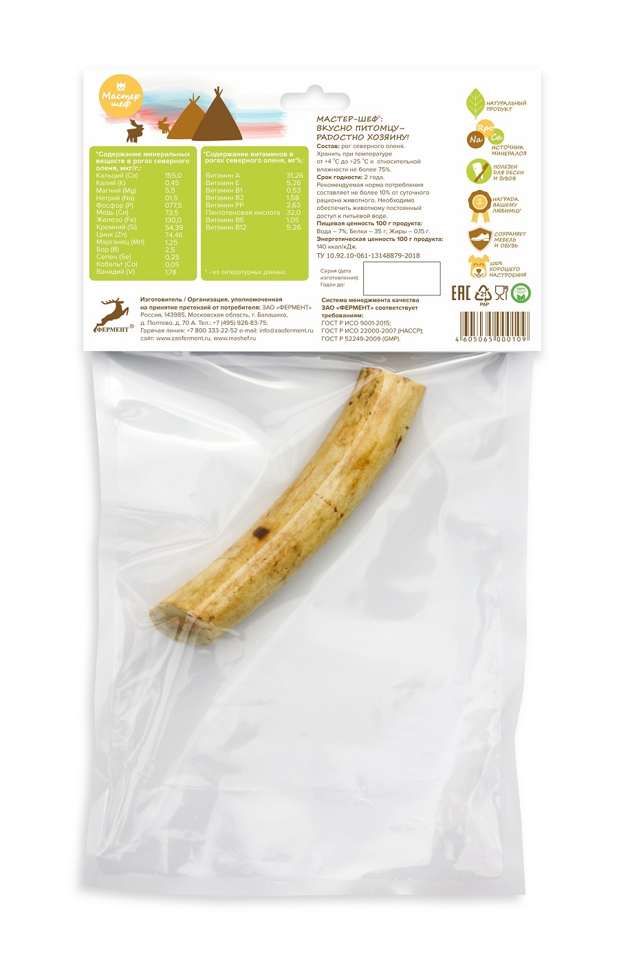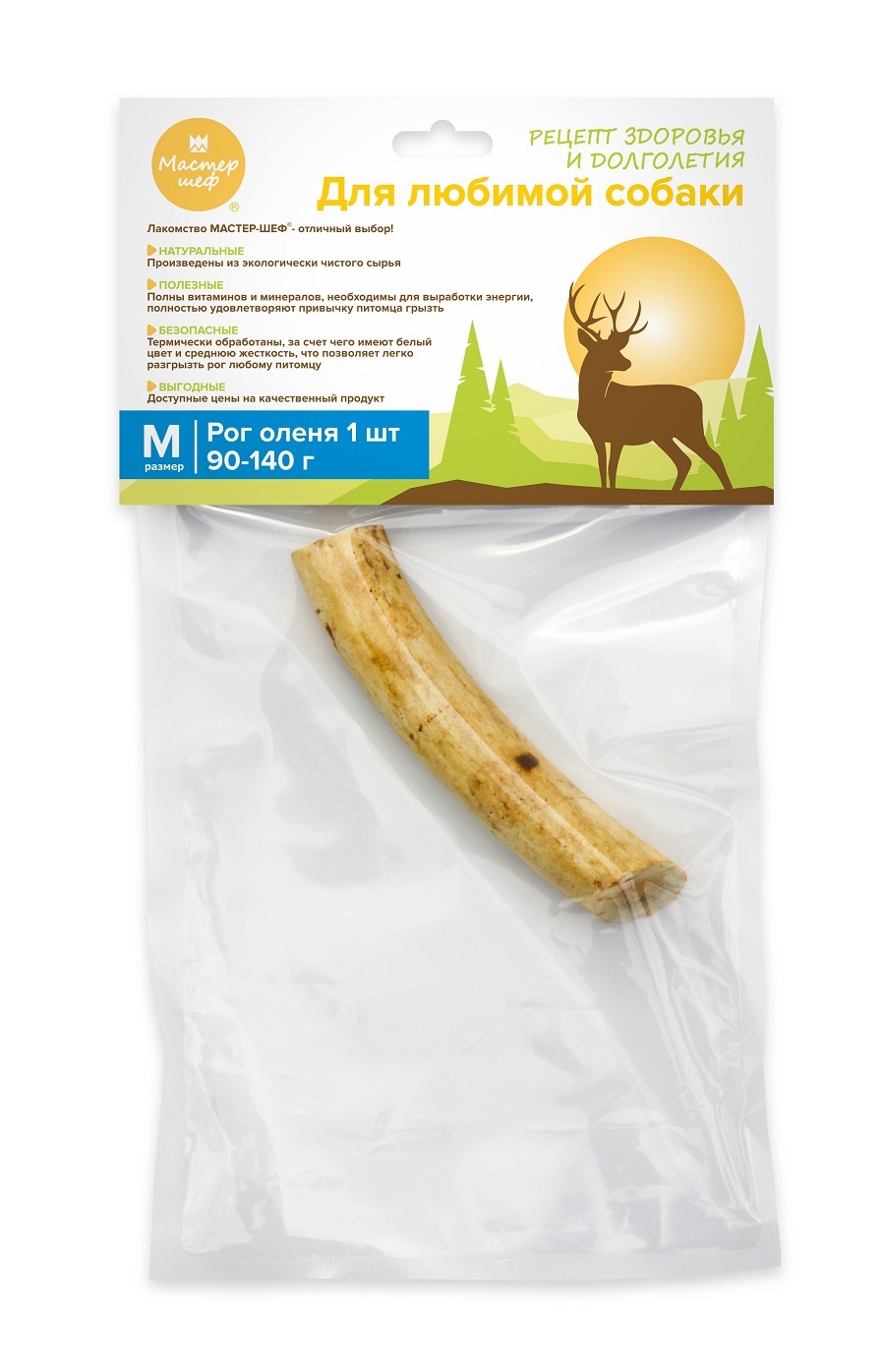 Лакомство для собак рог оленя "Мастер-шеф" Размер M, 1 шт, 90-140 г