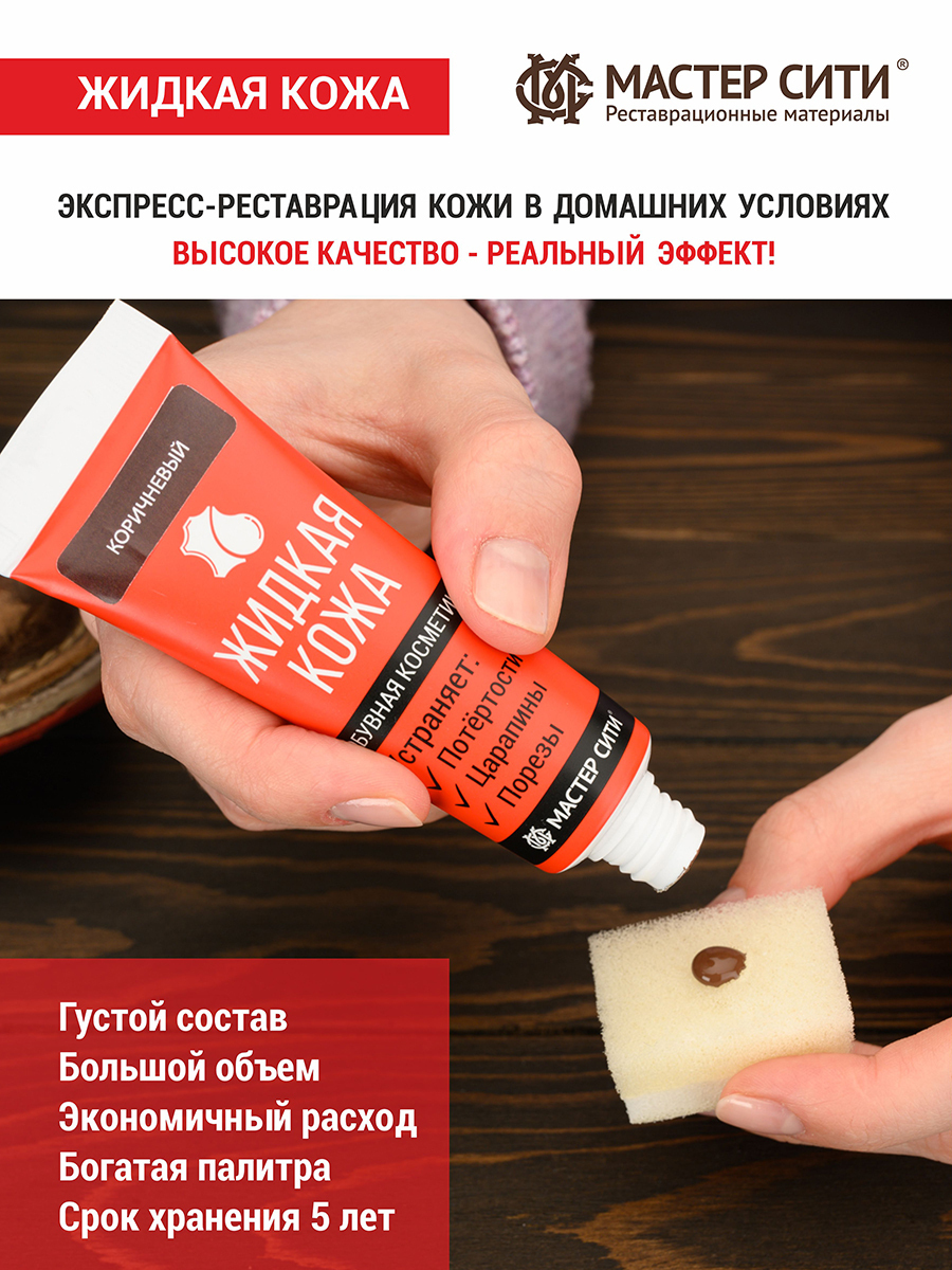 Жидкая кожа для ремонта кожаных изделий МАСТЕР СИТИ, 20 мл / Белый