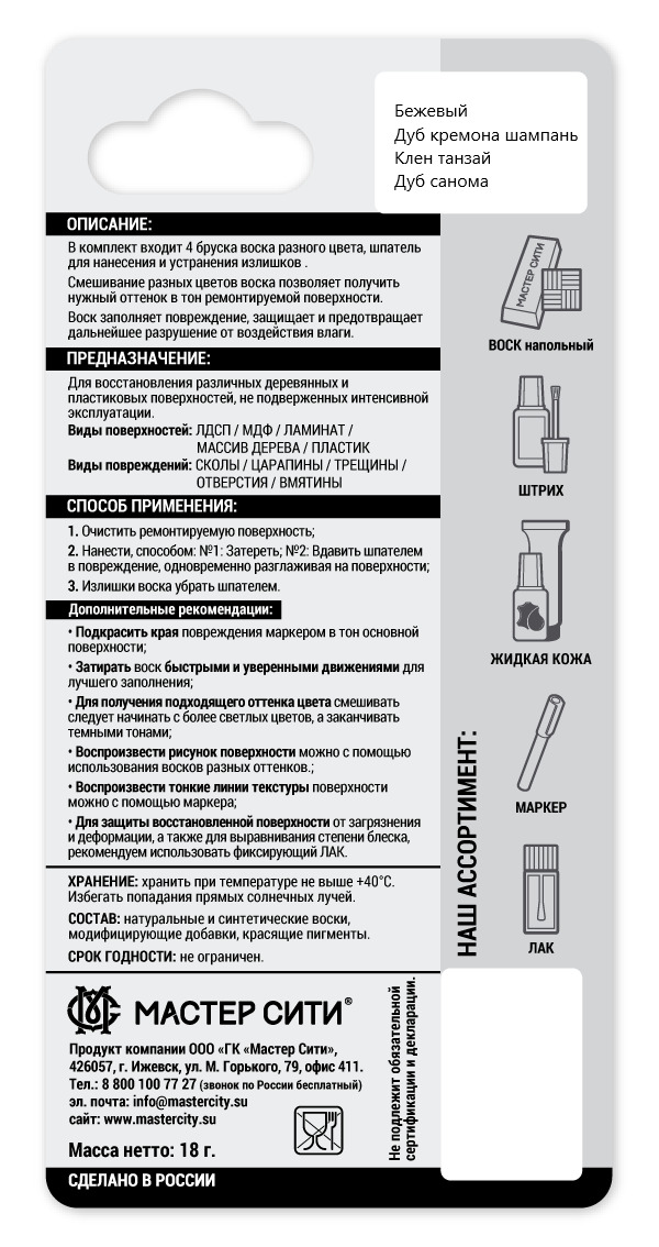 Набор мебельных восков со шпателем МАСТЕР СИТИ, 4 цвета / кремовые