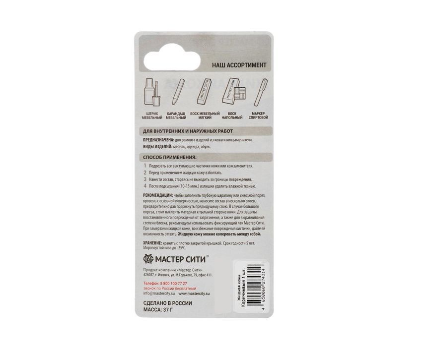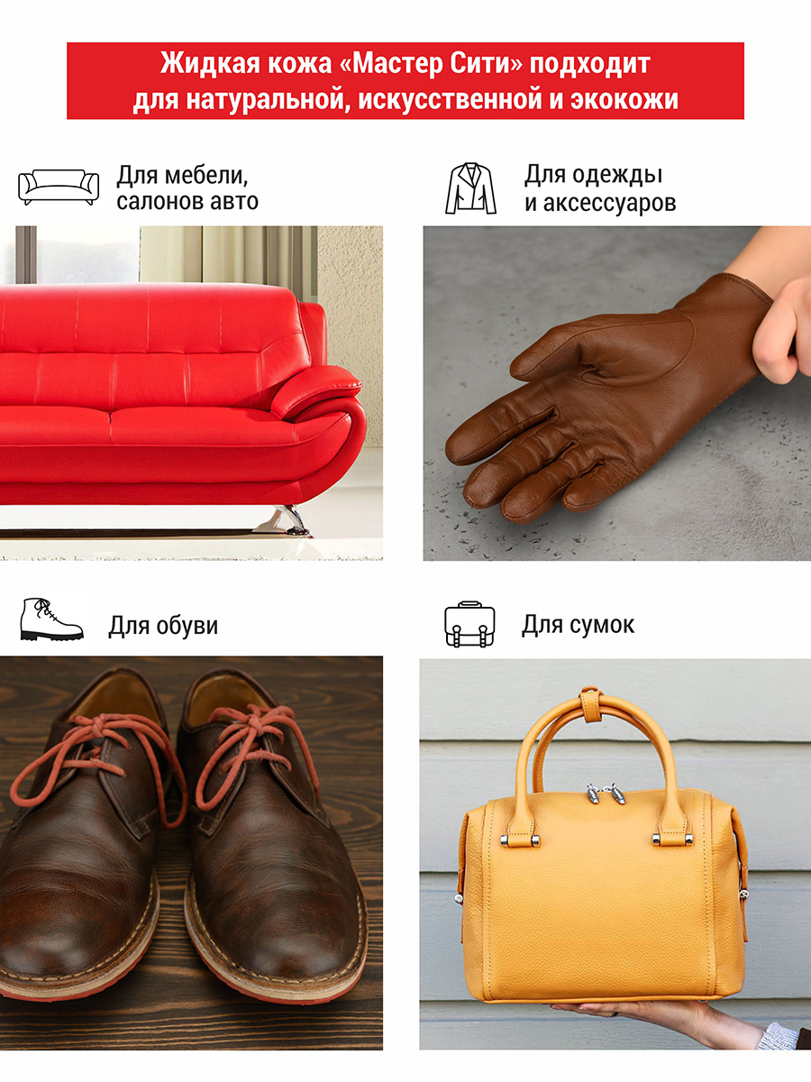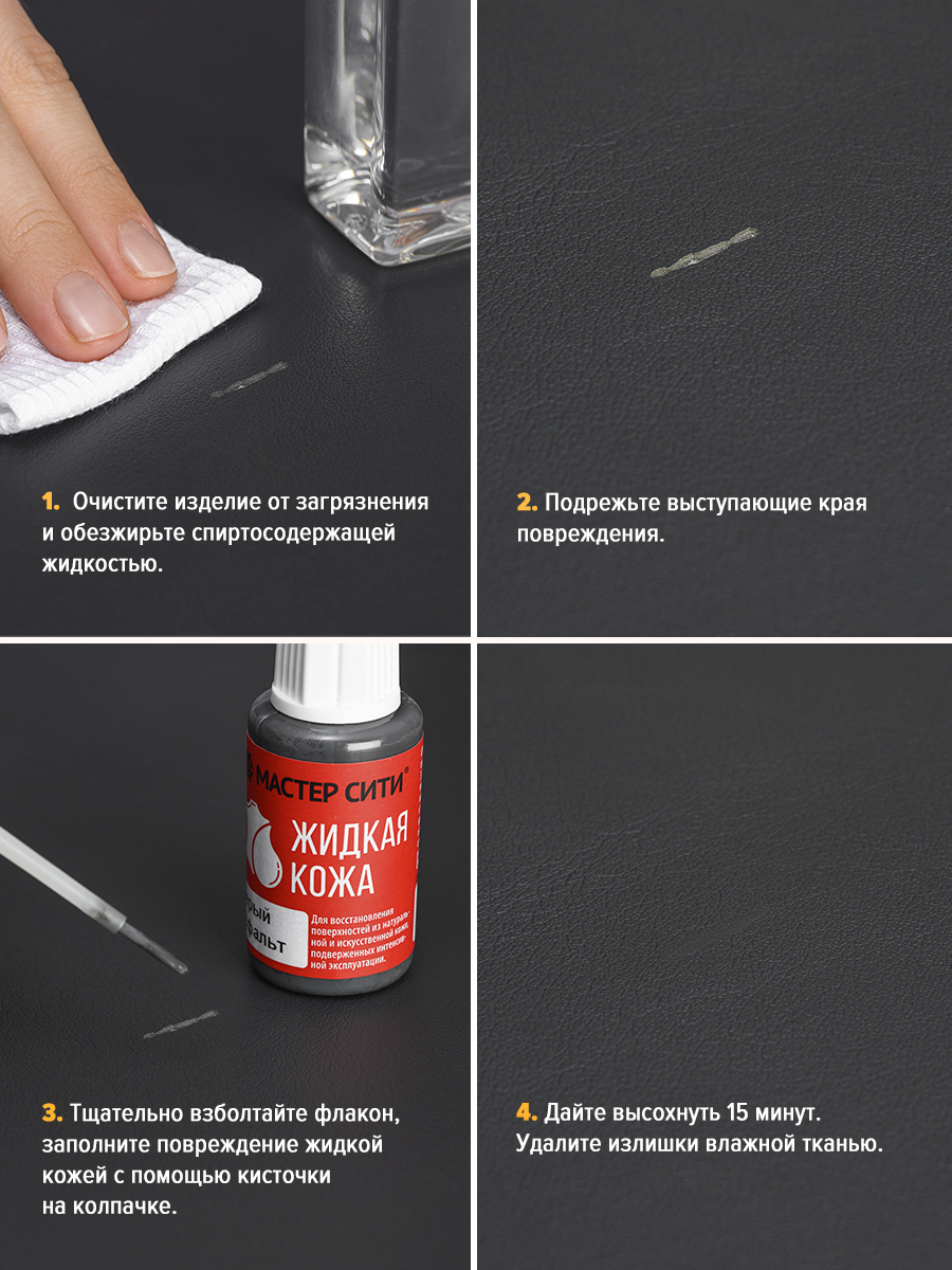 Жидкая кожа для ремонта мебели МАСТЕР СИТИ, 20 мл / Черный